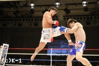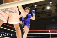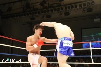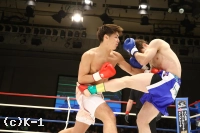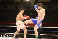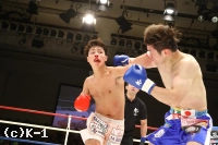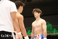1R、里見は跳び蹴りを見せて奇襲。しかし金子はこれを当てさせず、ミドル・ローを放ち、サウスポーからの右ジャブで里見をヨロめかせる。鼻血の見られる里見だが、左ボディストレートを打ち込み、金子が大きく振るってくるフックもダッキングしてかわす。金子は右ジャブを当てるが、続けての左ストレートは里見が逆にカウンターの左ストレートを当てる。金子はステップインしてのパンチを放っていくが、里見はバックステップで距離をあけて当てさせない。