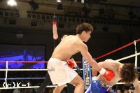 3R、里見はジャンプし左鉄槌を打ち下ろす。しかし金子は左ストレート、左フックと当て、里見をフラつかせてそこから襲い掛かる。ここで里見も下がりながら左ストレート、左フックとカウンターを見舞う。金子はタフさを見せ倒れず、止まらない。ここから金子は打ち合いに持ち込むが、足がもつれてバランスを崩してしまい、これをダウンと判断される。再開後、里見は再び後ろ回し蹴りを突き刺すと、パンチ連打を打ち込み、さらに後ろ回し蹴りを見舞って2度目のダウンを奪う。何とか立ち上がった金子に対し、里見はなおも後ろ回し蹴りから左ストレート、左フックで金子を大の字にしてKOを決めた。