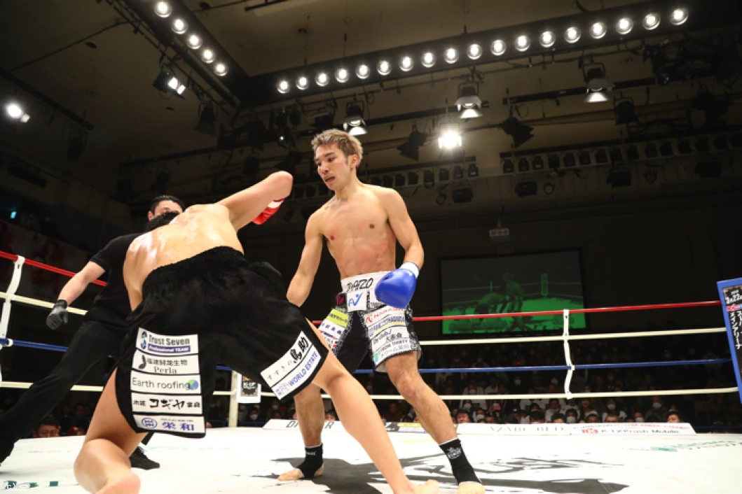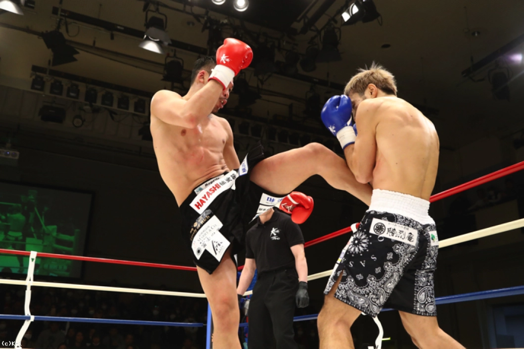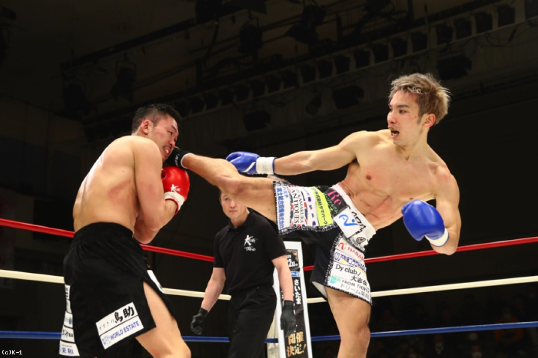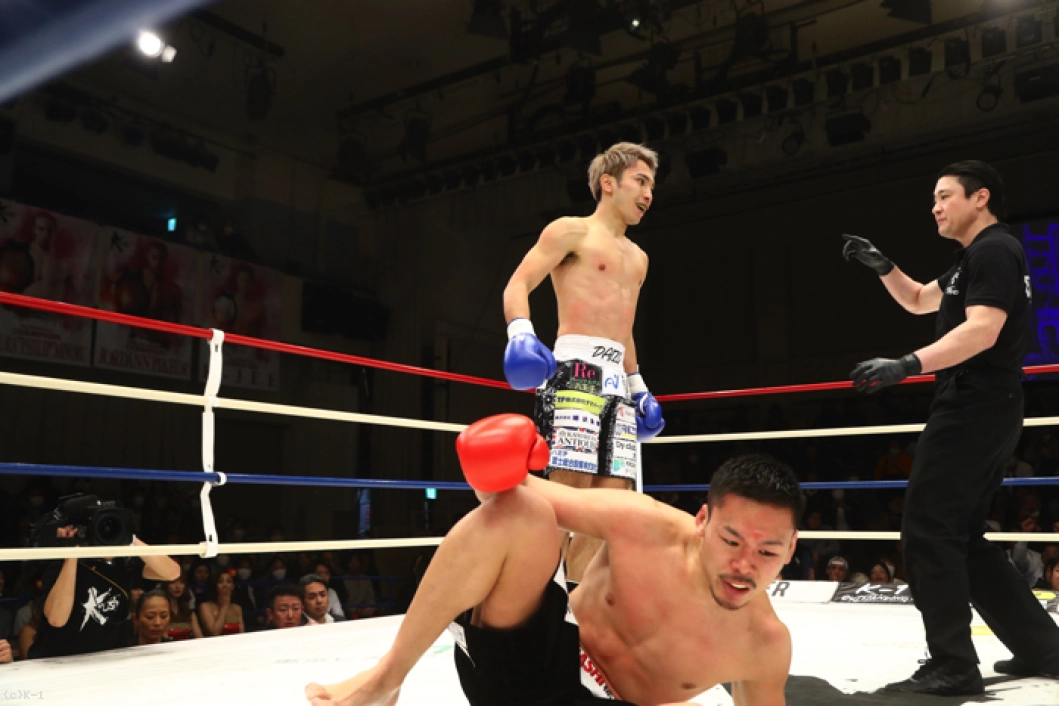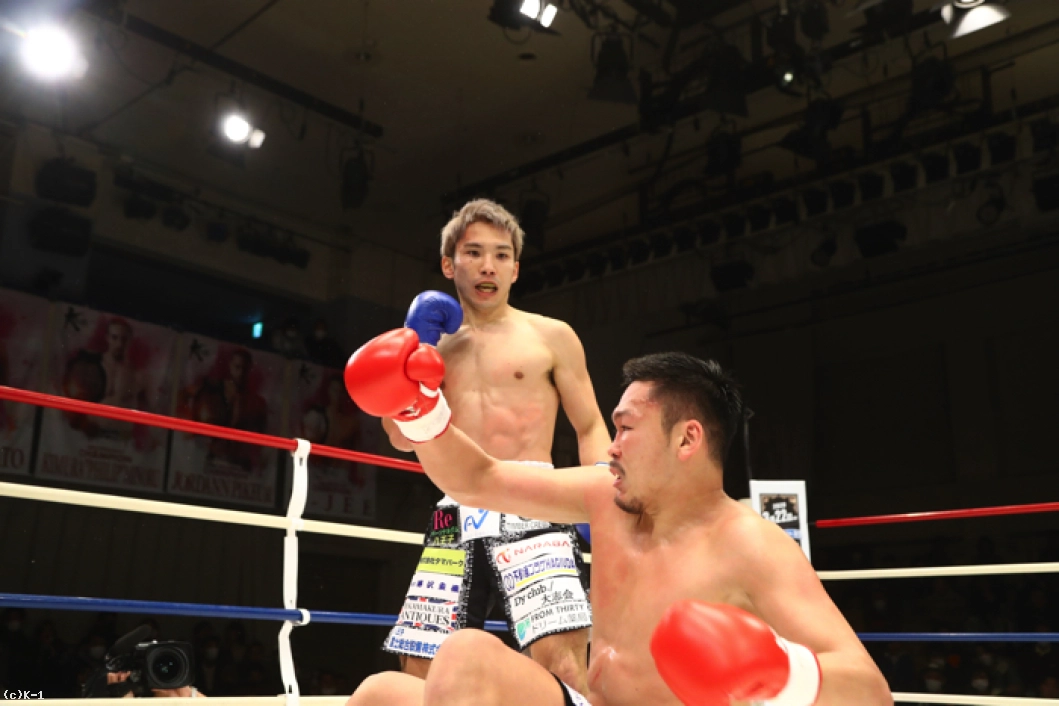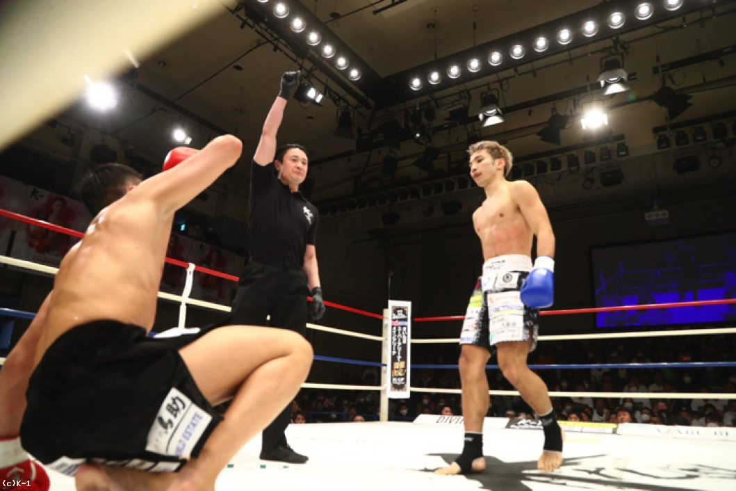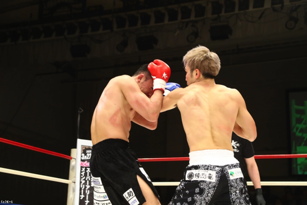 2R、左ミドル主体の鈴木は左ストレート・右フックとパンチも織り交ぜる。佐々木はこれにパンチのコンビネーションから右ロー、右ミドル。佐々木は左ミドルを受けた後で右ローをすぐに返す。佐々木の左アッパーに鈴木は左ストレートをカウンター。鈴木がそこから左ミドルで追っても佐々木はバックステップでかわし、鈴木が前に来たところで右ストレートのカウンターを突き刺しダウンを奪う。さらに佐々木は前に出ながらの右ストレートを鈴木に再度当て、2度目のダウンを奪う。