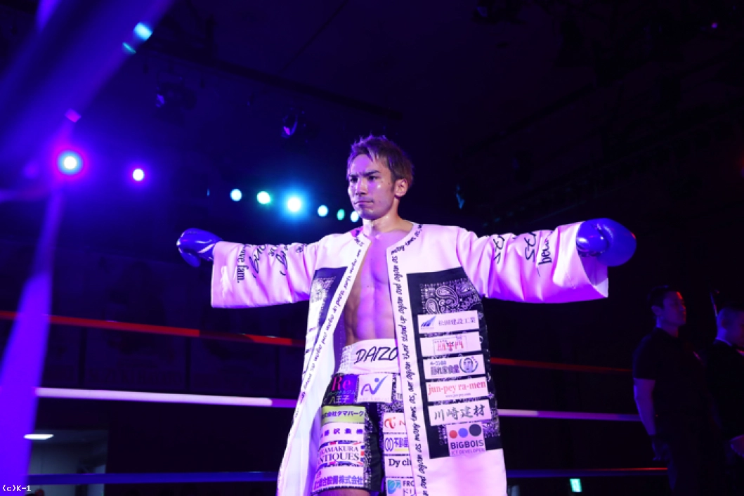 「みなさん、こんばんは。祝日にも関わらず、コロナウイルスで躊躇された方もいると思うんですけど、そういった中でお越し頂きありがとうございます。スーパー・ライト級は第8代目のチャンピオンで、この階級はチャンピオンも変わる難しい階級だと思いますが、僕がしっかりこのベルトを守っていきます。K-1でも3月にタイトルマッチが行われますが、チャンピオンから『佐々木大蔵だったらタイトルマッチをやってもいい』と言われる選手になっていこうと思います。みなさんの声がパワーになってます。こんな僕でもこういうところで活躍できるんだっていうのを糧にするというか、利用して明日から過ごしていってください。ありがとうございました!」