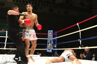 (今後の目標は?)この二年間、ずっと勝てなくて、周りの人にもいろいろ言われて、正直メンタルもけっこうつぶれてたんですけど、今年は4連勝4KOで勝ってタイトルマッチにいけるように、がんばりたいと思います」