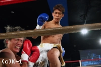 「(試合を振り返って?)最初から左ミドルがバンバン当たって、相手がちょっと嫌がっていたので、左の攻撃で攻めちゃおうと。相手はローキックにも反応できてなかったんで、そのふたつでたたみかけようかなと思って、攻めたらうまくハマりました。(対戦相手の印象は?)パワーがすごくある印象だったんですけど。やってみてスピードがなかったので、対応できると思いました。(今後の目標は?)今後はもっとKOを量産して、志村力輝、兼清流を有名にしていきたいと思います」