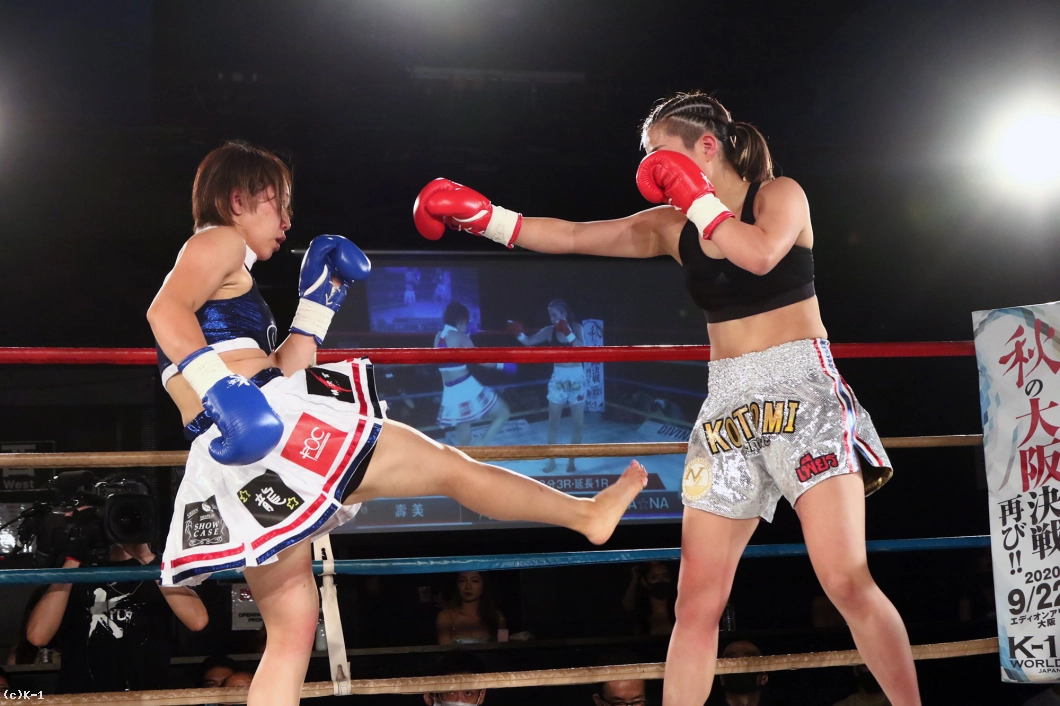 1R、壽美はサウスポーから左ストレート、左ミドルで先手で攻める。NA☆NAは反撃するものの後手となり、壽美が先手を取り続ける。その後も壽美がロー、ミドルと先に攻めることで試合のペースを作っていく。