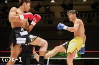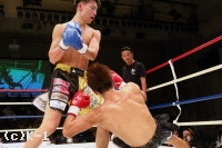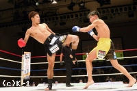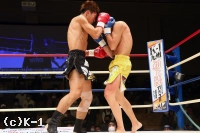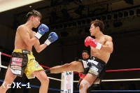 2Rも林はローとミドルで距離を取らんとするが、岡嶋は飛びヒザとそこから左フックを当てる。林は再び蹴りの組み立てに戻ってローを当てる。岡嶋は再度飛びヒザを見せ、そこから右ストレートを伸ばすが、林も左フックと右クロスで迎え撃つ。岡嶋は林の蹴りを受けても圧力をかけて右ストレートを伸ばす。そしてラウンド終盤、その右ストレートを当てて林からダウンを奪う。