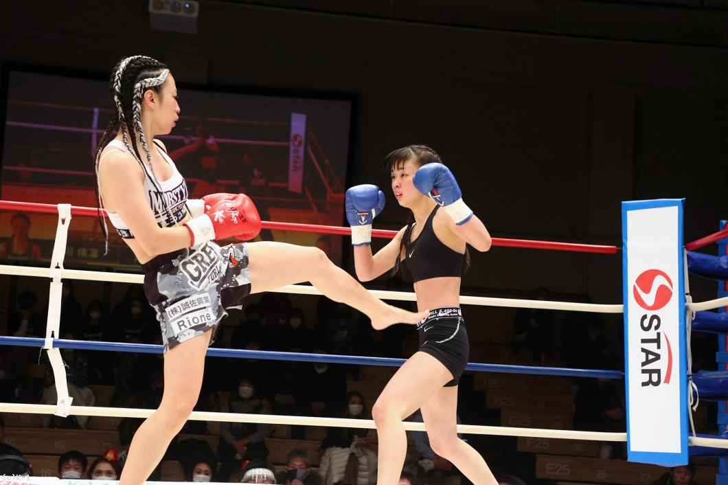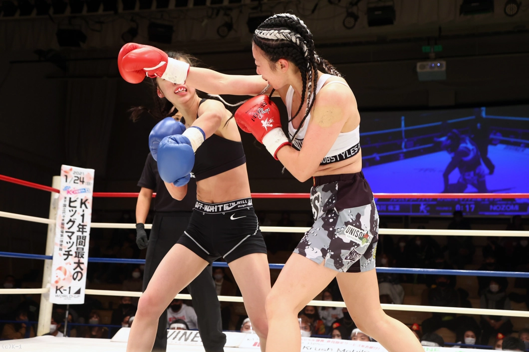 2R、NOZOMIはこのラウンドもフットワークを使って森川のパンチを空転させる。前に出る森川はカウンターを浴び、クリンチにも止められる。左フック、踏み込んでの右ストレートとヒットを重ねるNOZOMI。
