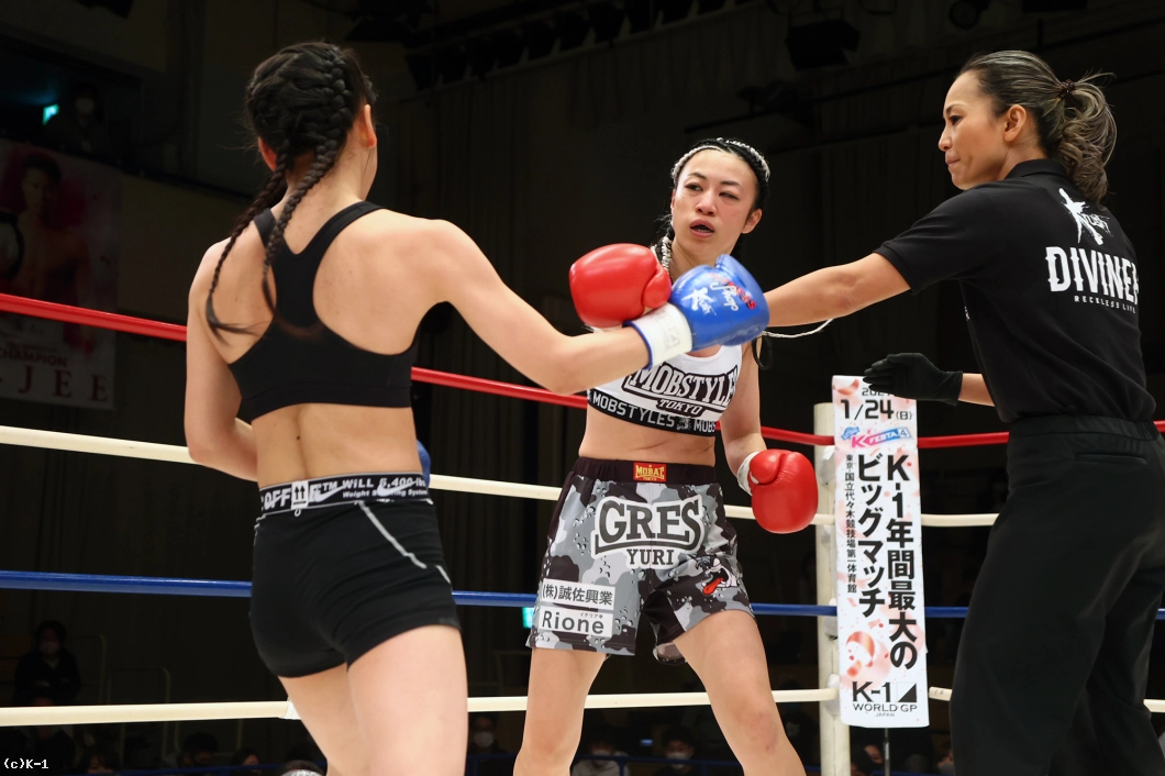3Rは前に来る森川にNOZOMIも下がらずパンチで応戦。森川を押し返して左フック、右ストレートと当てる。しかしNOZOMIは掴み行為が多くレフェリーから警告を与えられる。森川の右ストレートをNOZOMIはダッキングでかわす。 判定は30-27、30-27、30-27の3-0でNOZOMI。各ラウンドで支持を得て勝利した。