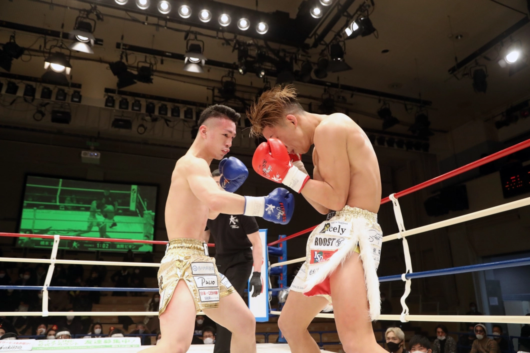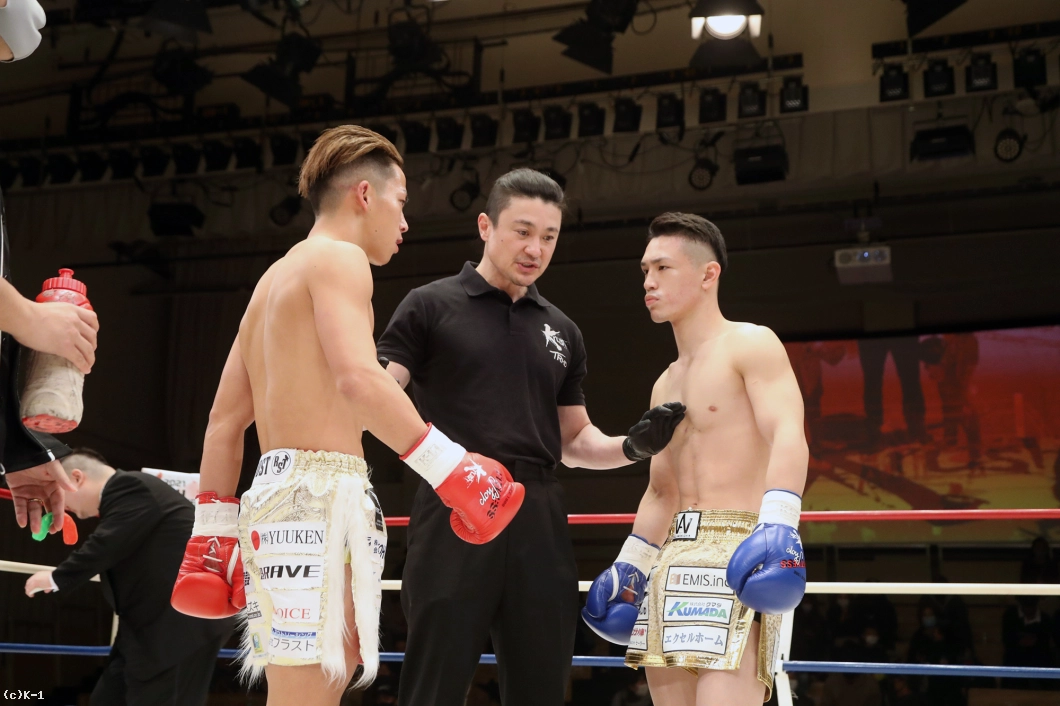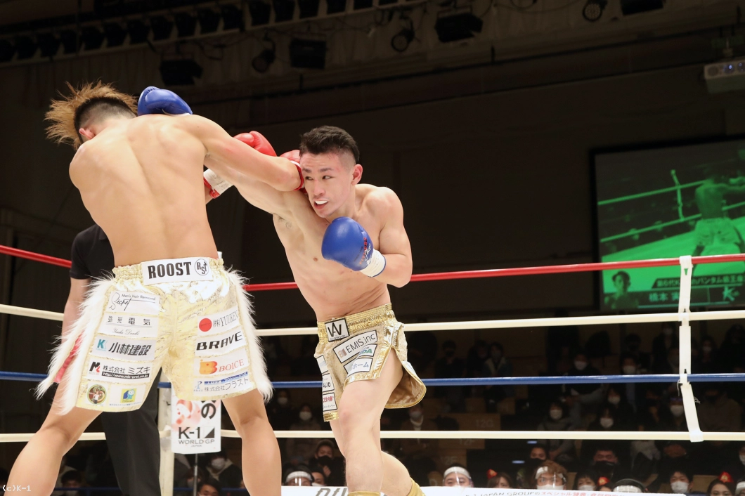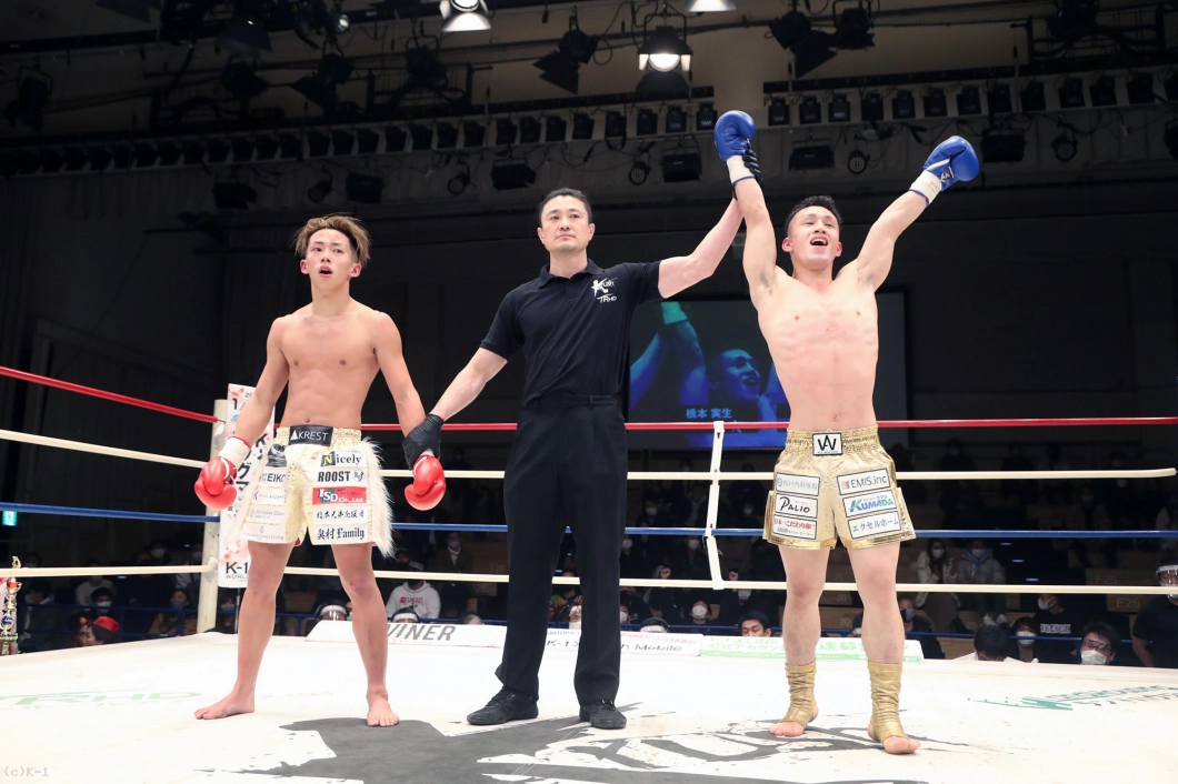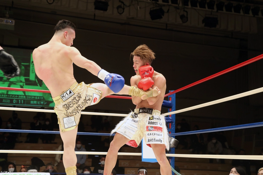 延長R、橋本は連打を見せるが吉岡はアームブロックで当てさせず、うちかえして ヒットを上げる。先手で手数多く攻める橋本だが、精度は吉岡は上回る。しかし橋本は右ミドルを連続で当てて前に出る。判定は1票ずつ別れた後で、最後の1者は吉岡を支持。互角の接戦を僅差で王者となった。
