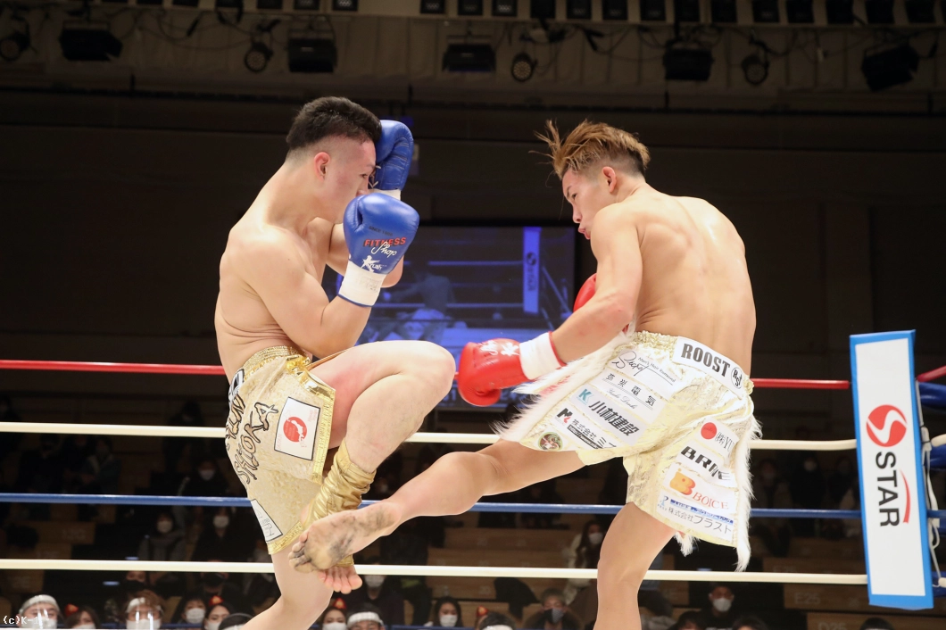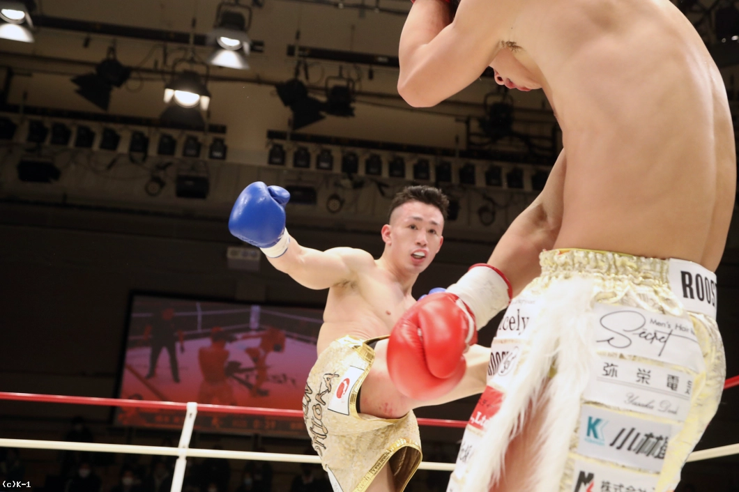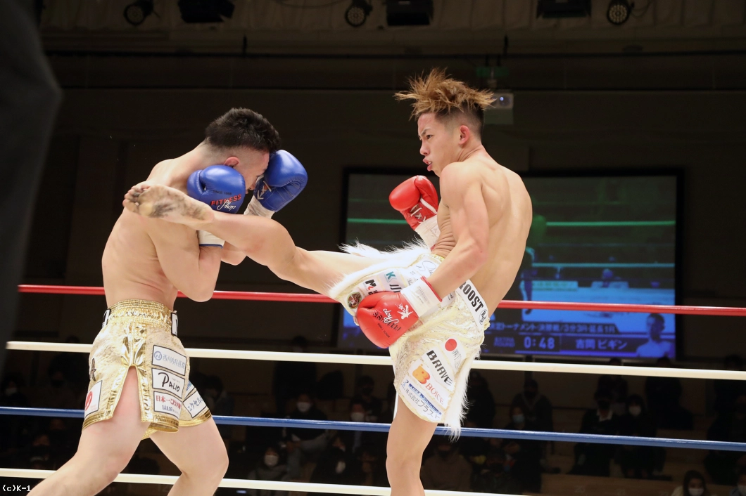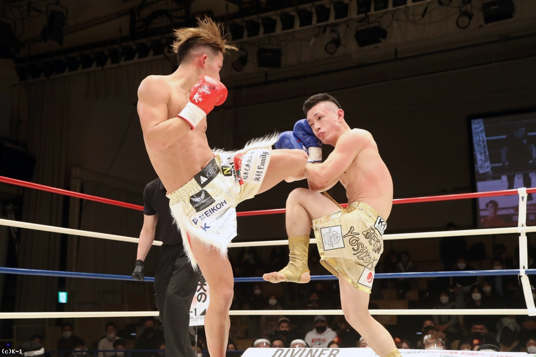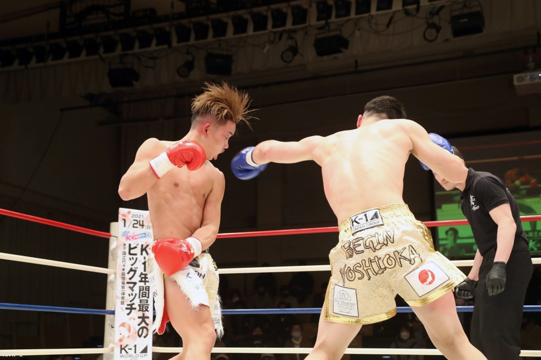 延長R、橋本は連打を見せるが吉岡はアームブロックで当てさせず、うちかえして ヒットを上げる。先手で手数多く攻める橋本だが、精度は吉岡は上回る。しかし橋本は右ミドルを連続で当てて前に出る。判定は1票ずつ別れた後で、最後の1者は吉岡を支持。互角の接戦を僅差で王者となった。