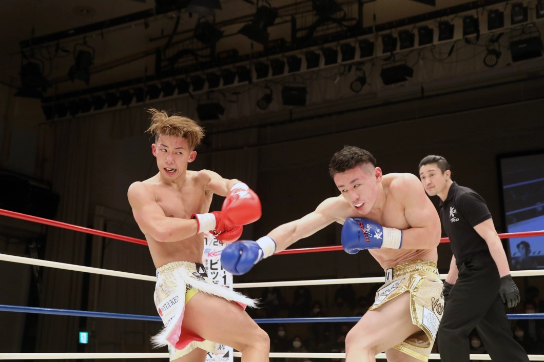 3R、橋本が振るう左右フックのインサイドを吉岡は右フック、左ストレートと抜いていく。ジリジリと橋本を下がらせる吉岡だが、ビッグヒットはなく拮抗した展開が続く。しかし吉岡はプレッシャーを効かせており、橋本にロープ・コーナーを背負わせる。先手で攻め、ヒットは上げる吉岡だが大きなヒットは上げられてない。判定は30-29、30-30、30-30で吉岡に1票入るもドロー。延長戦に突入となる。