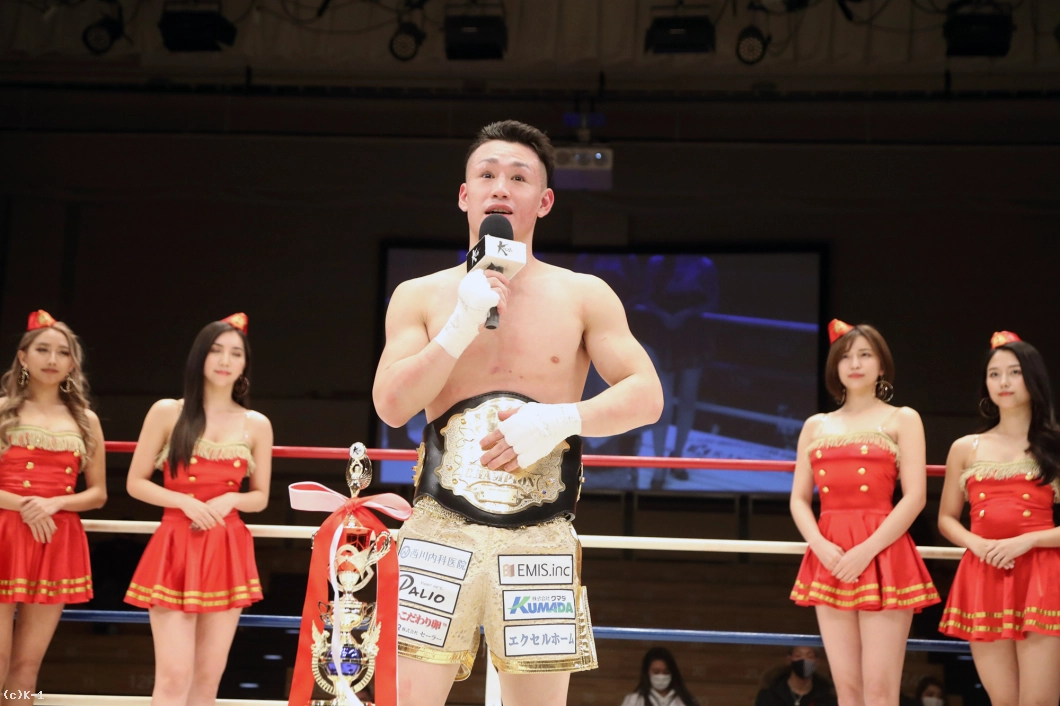 (セコンドの安保瑠輝也からどんな言葉があった?)しっかり怒っていただきました(苦笑)。僕らは周りが褒めることはなくて、褒めるより課題を指摘して、そこを伸ばしていくチームなんで。課題を練習して埋めていきたいと思います。(今後の目標は?)今はまだ歴代チャンピオンに及ばないので、チャンピオンらしくベルトの価値をあげられるように頑張ります。チームのみんなに褒めてもらえるような試合をして、自分の価値を上げる試合をしたいと思います」