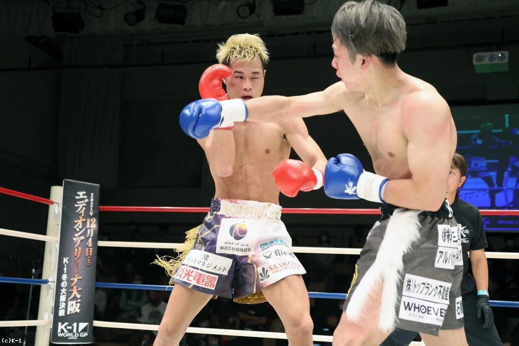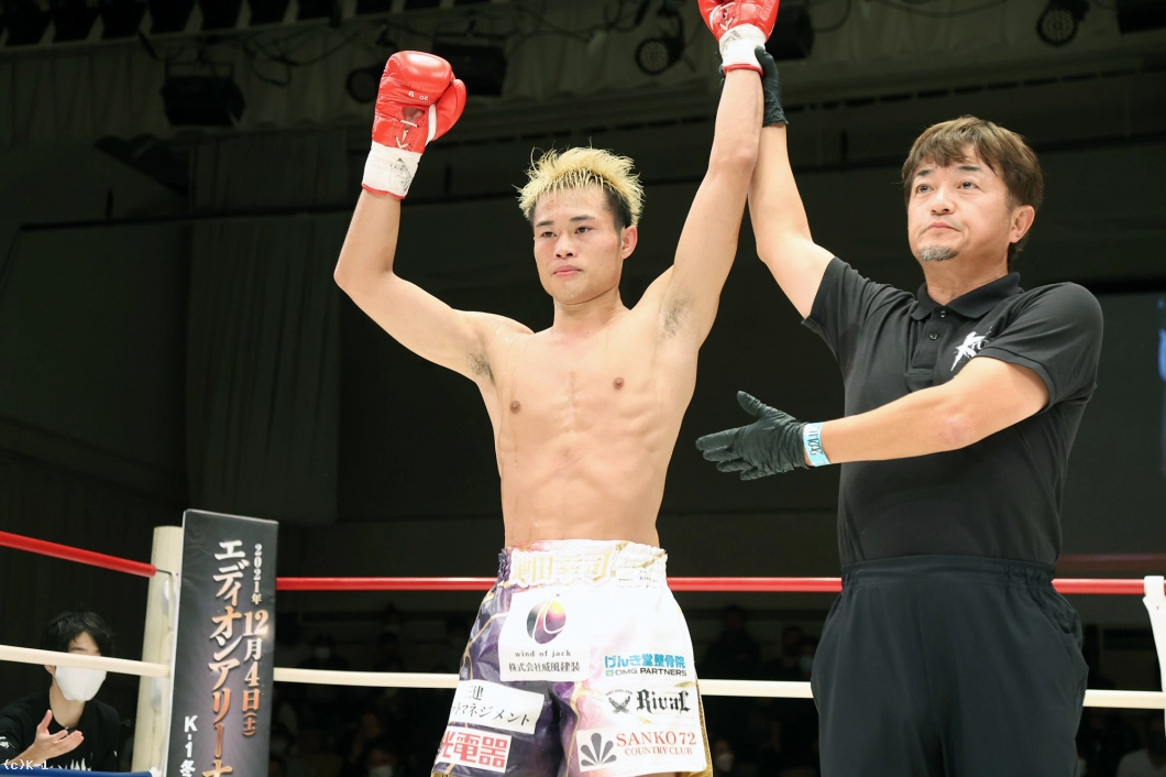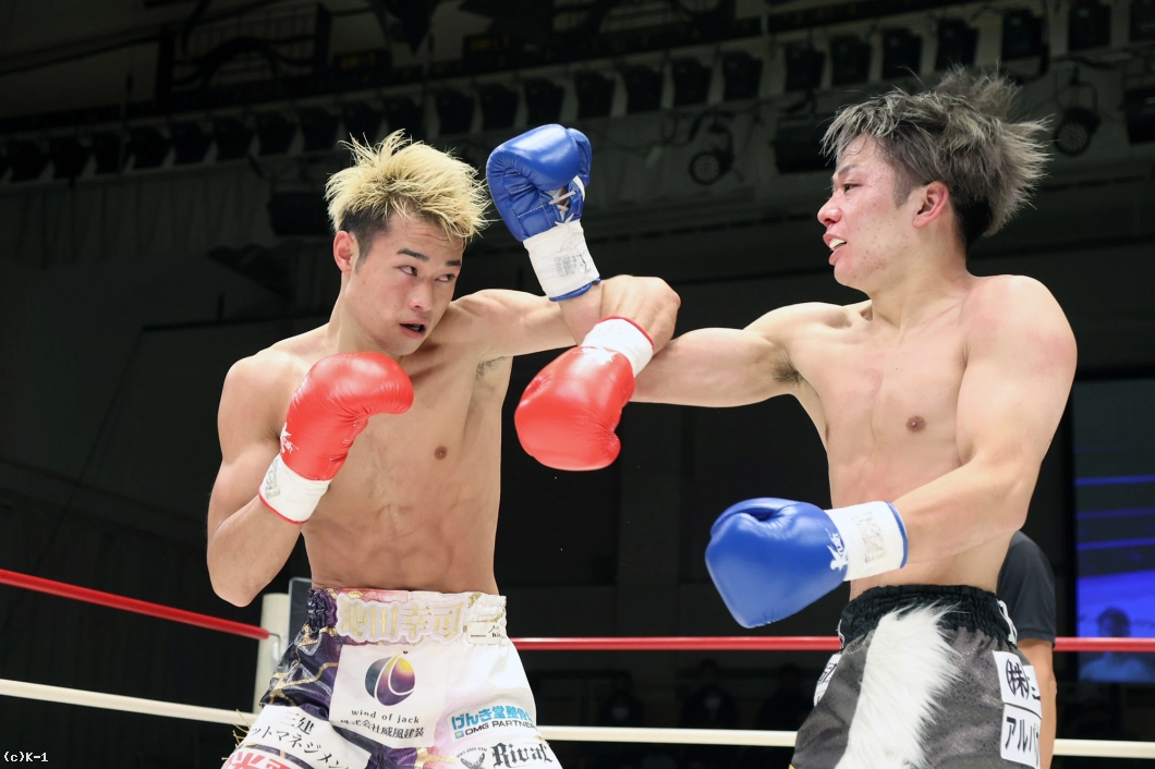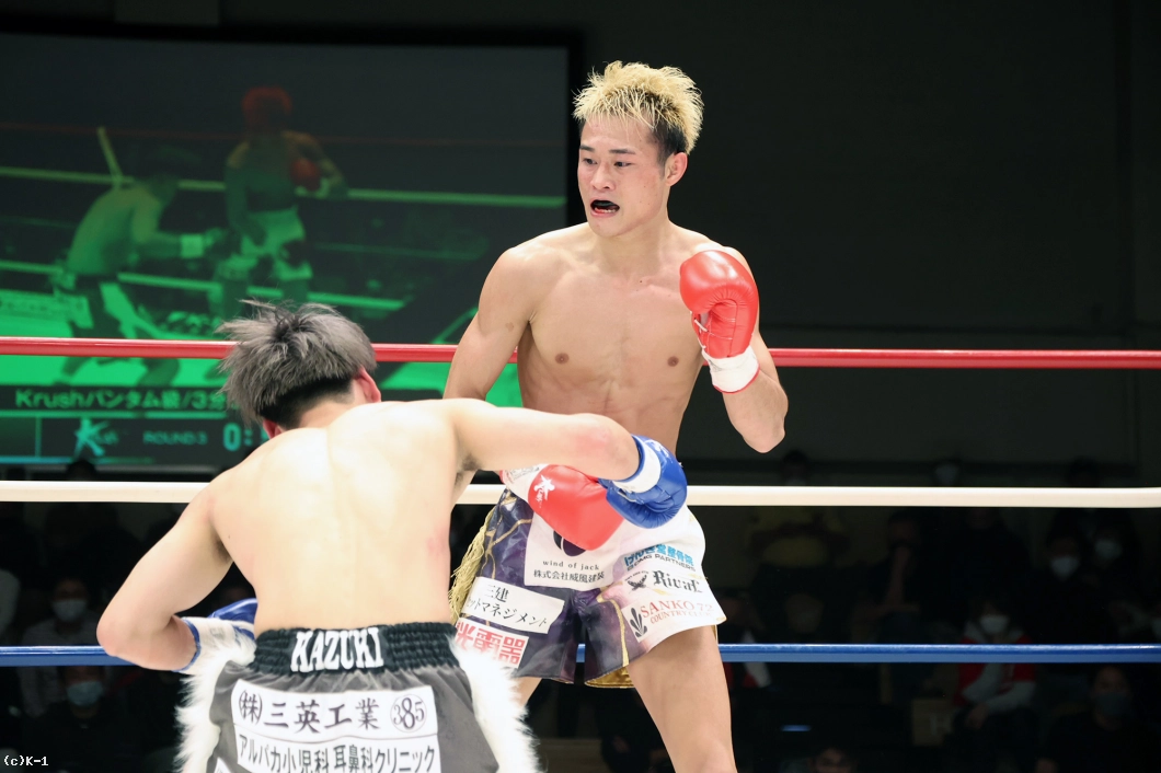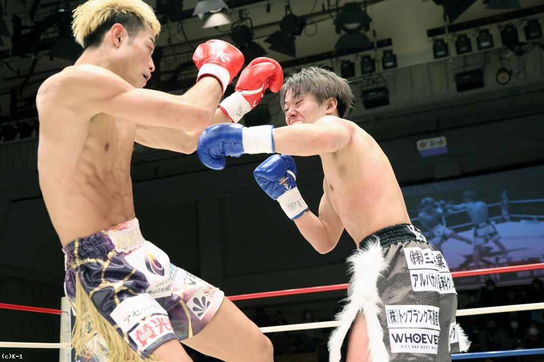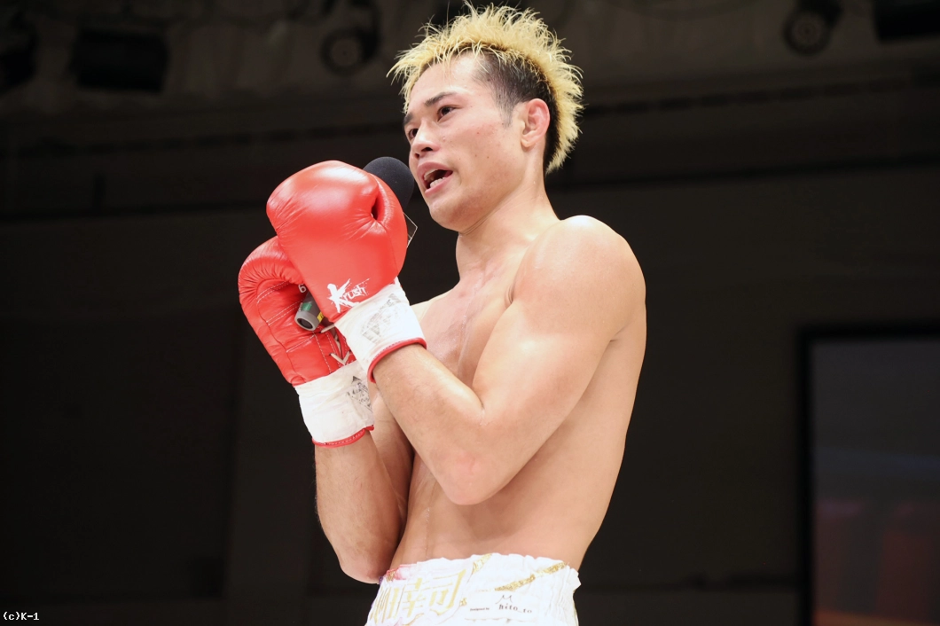 「綺麗にKO勝ちすることを狙ったんですけど、ドロドロの試合になっちゃって。盛り上げることはできたんですが、思い通りの試合にはならなくて、それは改善点だと思います。(対戦相手の印象は?)もともと打ち合いが強いと思ったんですけど、その通りパンチが硬くて重くて根性もあって、すごくいい選手でした。(今後の目標は?)もう自分はトップ戦線にいると思うので、同じトップ選手たちに勝って、さらに上を目指したいと思います」