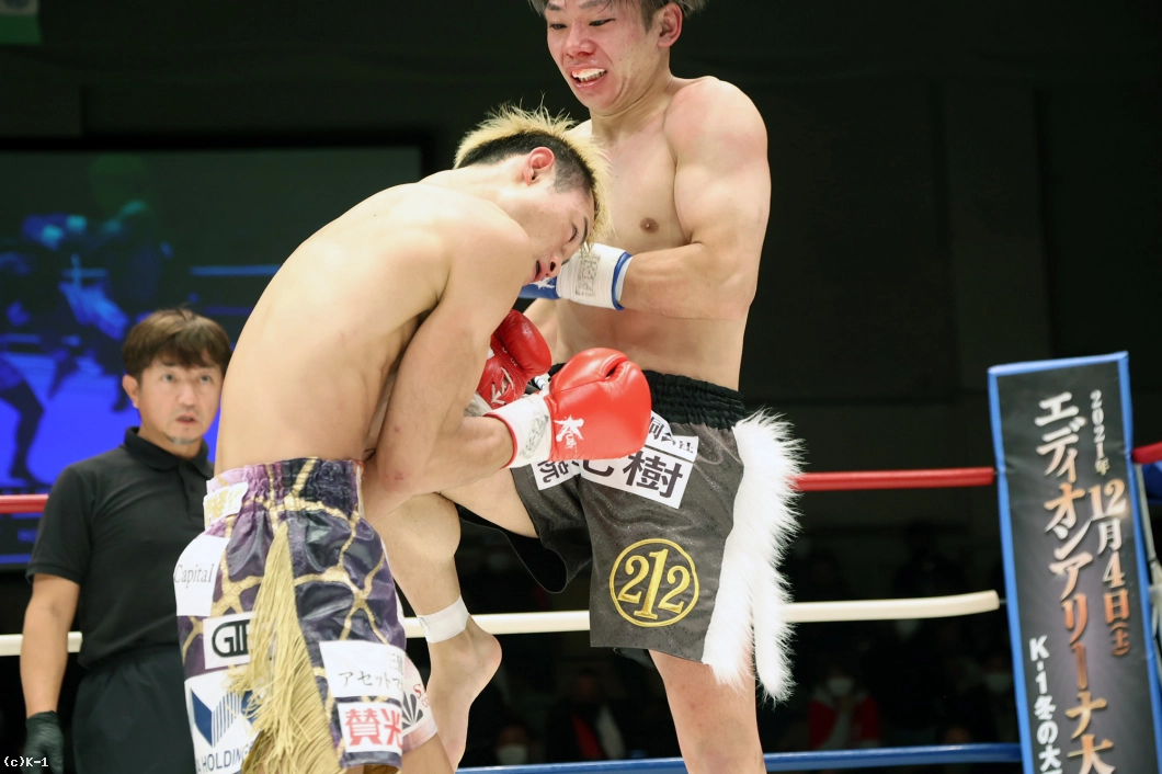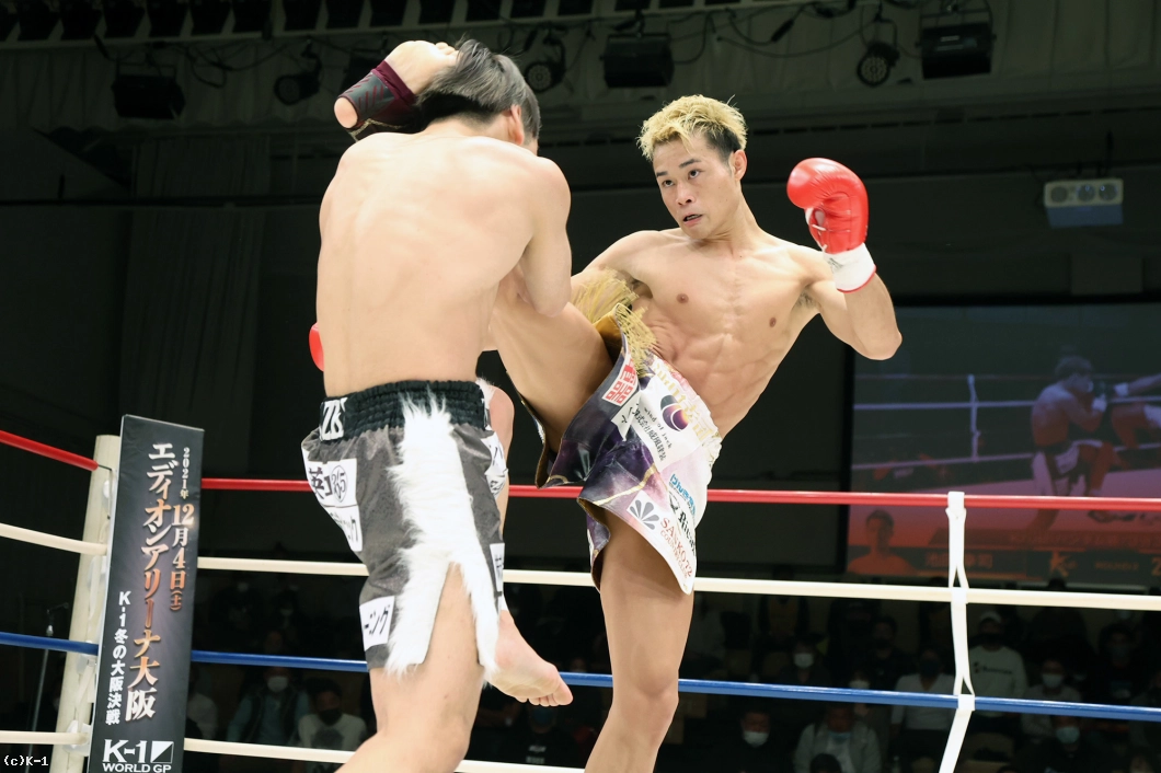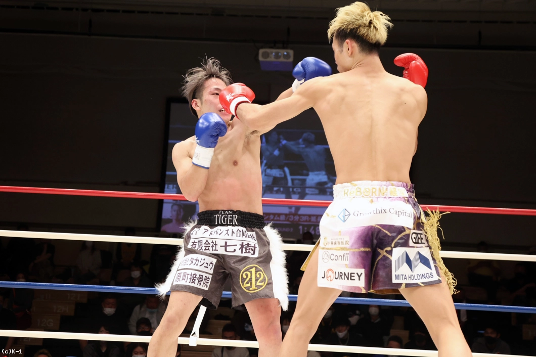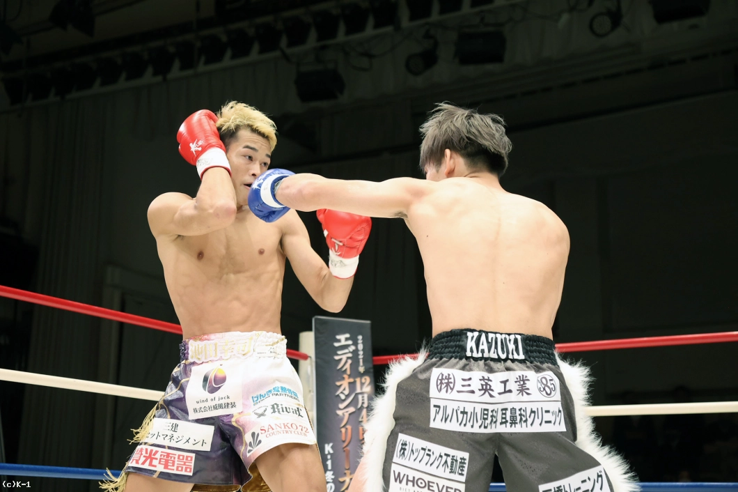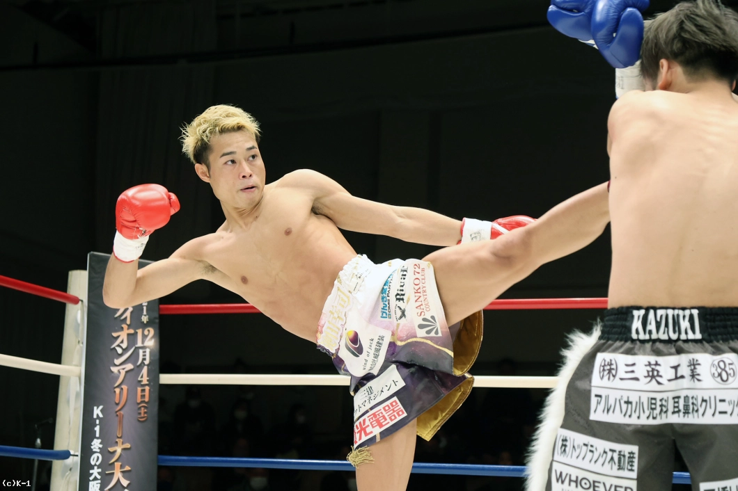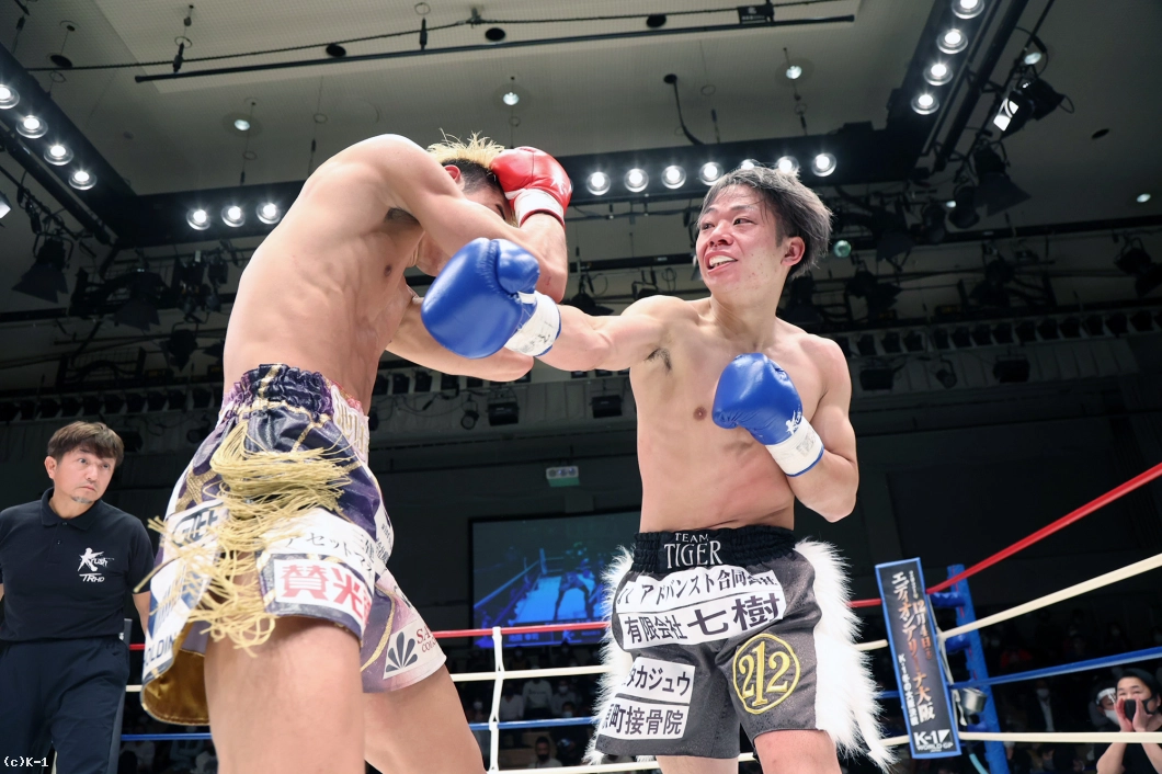 「綺麗にKO勝ちすることを狙ったんですけど、ドロドロの試合になっちゃって。盛り上げることはできたんですが、思い通りの試合にはならなくて、それは改善点だと思います。(対戦相手の印象は?)もともと打ち合いが強いと思ったんですけど、その通りパンチが硬くて重くて根性もあって、すごくいい選手でした。(今後の目標は?)もう自分はトップ戦線にいると思うので、同じトップ選手たちに勝って、さらに上を目指したいと思います」