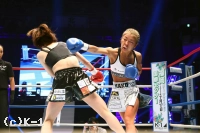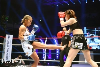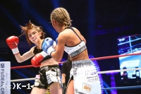 (それを封じられたのは?)KRESTでずっと練習を重ねてて、前回の反省点をすごく考えて考えて、K-1らしい戦い方、倒しにいく姿勢だったり、強気で強気でっていう気持ちで、今回は頑張れたかなと思います。(倒した感触は?)私はホントに倒せない選手だったので、すごくうれしいです。女子高生ぶりのダウンを取れたかなって感じですね。何年ぶりやろ? 7年前とかですかね。