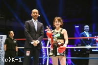 (ファンへのメッセージを)改めて、今回応援してくださりありがとうございました。K-1での初勝利を収められて、すごくうれしいです。これからもっともっと進化していきたいと思っているので、これからも応援よろしくお願いいたします」