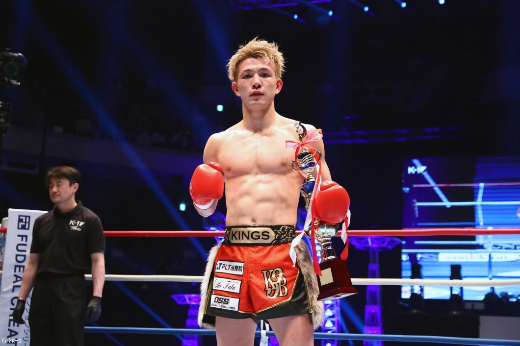 「(試合の感想は?)とりあえず、今回の試合は絶対に何としても勝ちたかったんで、とりあえず勝ってホッとしてます。(相手の印象は?)思ってた以上にパンチが固くて、あと気持ちが強いなと、やってて思いました。(自分がよかった点は?)相手はたぶん、自分のペースで打ち合いたかったと思うんですけど、そのペースにさせなかったのと、あと蹴りも混ぜれたのが勝因かなって思ってます。