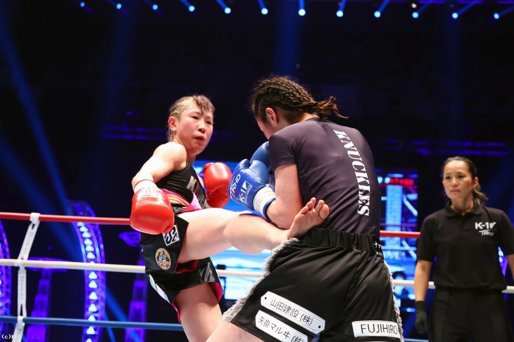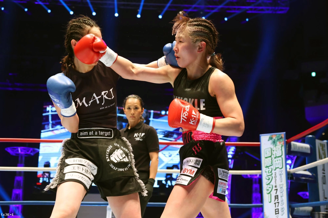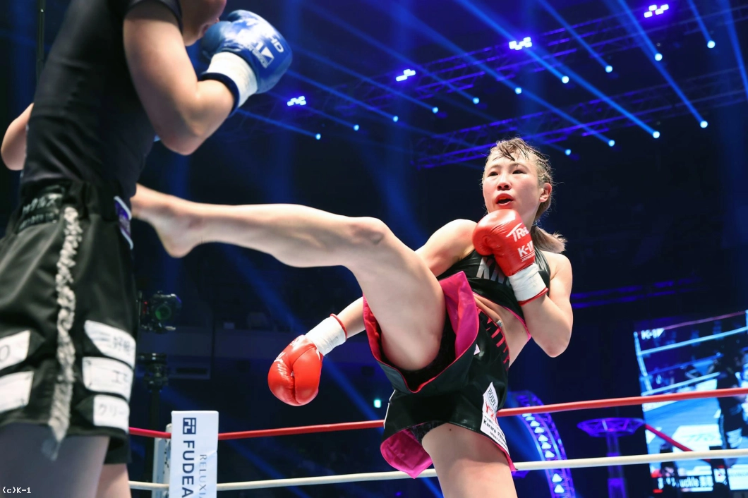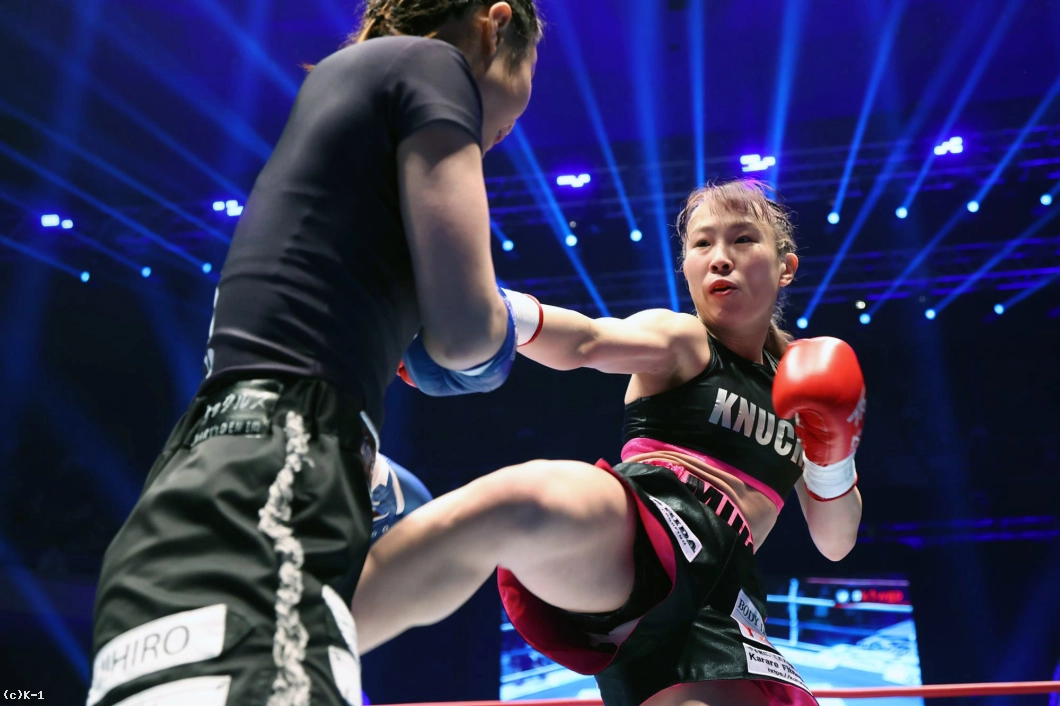 (ファンへのメッセージ)こんな勝ち方じゃ全然上にいけないので、いまの倍以上、練習してもっと強くなるので。K-1のミニマム級のベルトを獲りたいので、それ目指してがんばります。応援よろしくお願いします」