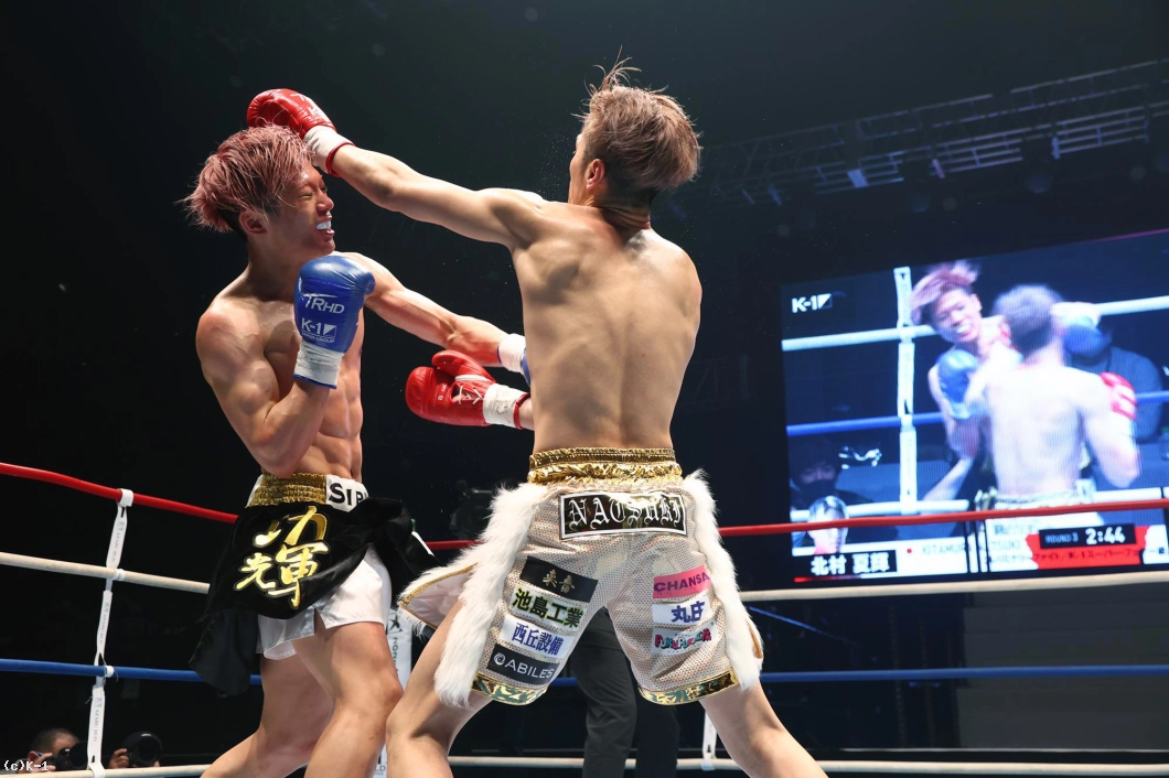 3R、開始早々から互いにパンチを打ち合う展開に。赤田は追いながら左を連打。北村も右を返すが、バッティングで赤田にダメージがあり中断。再開後、互いにギアを上げパンチを打ち合う。北村はヒザ、赤田は左をヒット。終盤、赤田は前進しながら左を連打。下がる赤田を北村が追うが、赤田もパンチを繰り出して反撃。北村が右ハイを決めた直後にゴング。