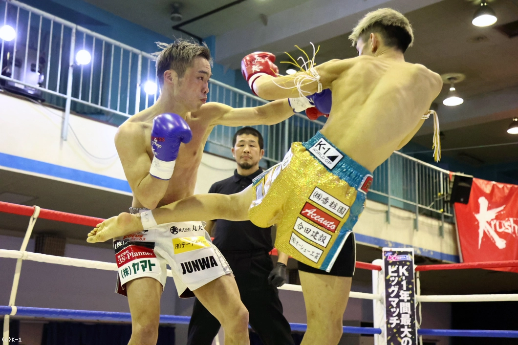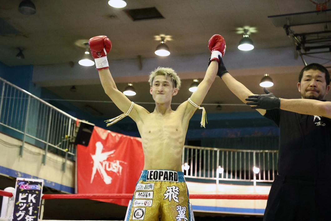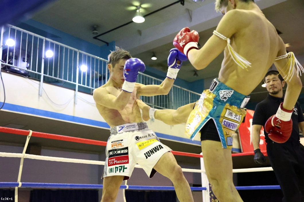 「最初から自分の戦いができて、距離を測ることができたので1Rはポイントを取れたと思いました。それでローキックが効いていたので、2Rにローの高さを変えて蹴ったらハマりました。(対戦相手の印象は?)前の試合でもパンチが上手くて、パンチでダウンを取っていたので、パンチを警戒して戦いました。ガードの上からでもパンチが重かったので、ガードしてなかったらやばかったと思います。(今後の目標は?)3月のKrushで吉岡ビギン選手と壬生狼一輝選手のタイトルマッチがありますが、そこに近づきたいと思います。最終的にベルトを獲ることが目標ですが、次に用意されたt相手を倒していけば、おのずとベルトに近づくと思うので、決まった相手を倒しに行きます」