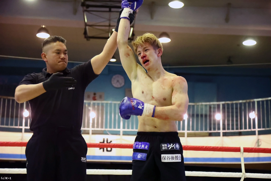 「3連敗中の試合で、相手をぶっ倒すという心を持てたことが最後のKOにつながったかなと思います。(対戦相手の印象は)細かい近いところのパンチが上手でした。自分が落ち着いていけたらもっと早く倒せたと思ったのですが。いい選手でした。(今後の目標は?)一戦一戦勝ちを重ねて、近いうちにベルトを獲りに行きます。K-1にも出場したいと思います」