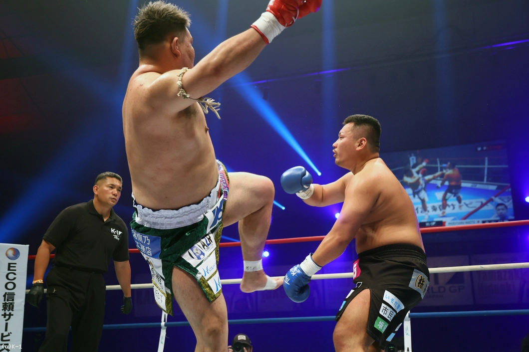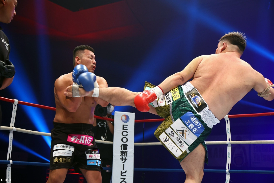 2R、ムエタイ式にリズムを取る実方に対し、丸山は周囲を回る。丸山が左右フックを振るっても実方はブロックしてカーフキック。実方はジャブでのリードから右ローを打ち込みこれを効かせるが、続いての一打がローブローとなってしまいインターバルとなる。再開。実方はリズムを変えずにミドルで攻めていく。そして終了ゴングの直前に左ハイ。これに丸山はバッタリ倒れ、3分ちょうどでのKOとなった。