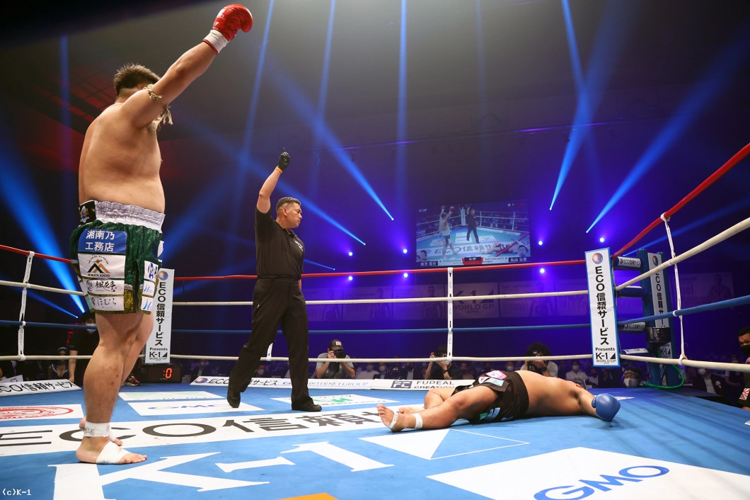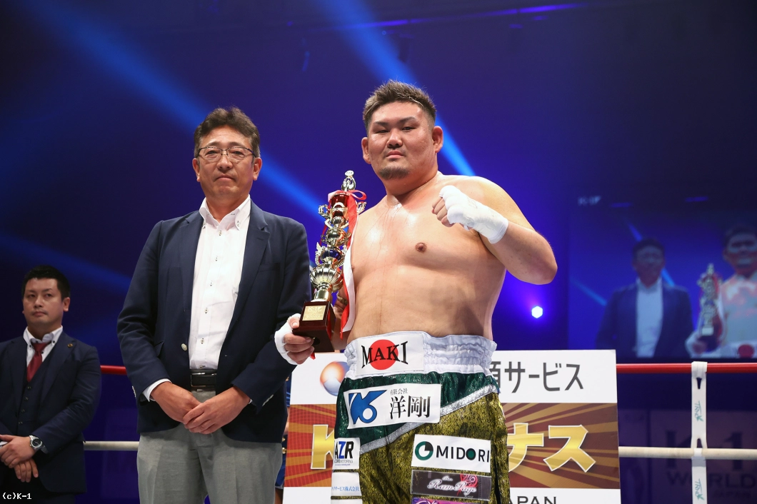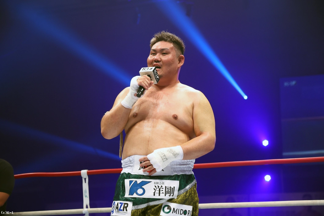 (新しい階級でベルトも期待されますが)やっぱりベルトはほしいんですけど、今日も勝てたんですけど、まだまだこのままじゃダメだと思うんで、絶対に外国人ではなく日本人の自分がベルトを獲れるように頑張りたいと思います。(ファンの方へメッセージを)今日は応援ありがとうございました。まだまだこんなもんじゃないんで、もっと練習して強くなって、また違うパターンのKOで倒す試合ができるように頑張りますので、応援よろしくお願いします」