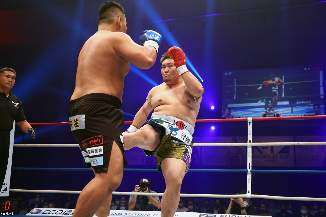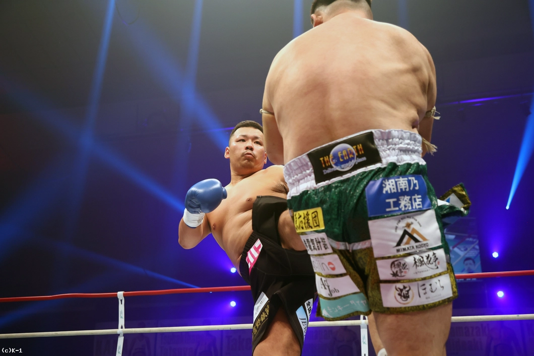 (相手の印象は?)計量の時14kg差ということだったんですけど、体格差はスーパー・ヘビー級なのであると思いますけど、蹴りが強くて動きも速かったんで、自分が思ってたとおりなのかなと思いますね。(K-1の大会場で試合できたことは?)かなりたくさんの声援をもらって、なかなか味わえないことなので、ここでしっかり結果を出せるように頑張っていきたいと思います。(ファンの方へメッセージを)今回不甲斐ない負け方をしたんで、もう一回イチからやり直して、KOで勝てるように頑張っていきますので、今後とも応援よろしくお願いします」