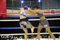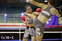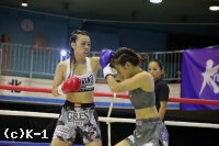 「今回は過去に戦っていて勝っている相手だったんですけど、前回は延長でギリギリ勝てたので。今回はダウンを取れて圧勝できたところがよかったです。(前回の対戦との違いは?)サウスポー対策をしてきたので、それが練習通りに出た結果かなと思います。(今後の目標は?)Kアトム級のベルトも欲しいんですけど、K-1の大きな舞台に立って、華やか女子選手より派手な試合をして客席を盛り上げるような試合をしたいと思います」
