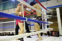 2R、天野がローと右ストレートで前進。佐生は右ストレートを合わせ、右のカーフキック(膝から下・ふくらはぎを蹴るローキック)を当てる。これで天野の足が止まり、身体が流れる。カーフキックを狙う佐生だったが、逆に天野は距離を詰めてパンチを打ち込んでカーフキックを蹴らせない。