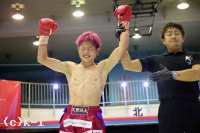 3R、天野は構えをスイッチしながら距離を詰めて右ストレート。これが佐生の顔面を捉えてダウンを奪う。再開後、勝負を決めたい天野はパンチをまとめるが、ここで佐生の右ストレートが当たり、今度は佐生がダウンを奪い返す。再開後。両者は再び激しい打ち合いを繰り広げ、打ち勝った天野が佐生に連打を浴びせるとレフェリーが試合をストップ。カーフキックを効かされるピンチから一転、天野がダウンの応酬を制してデビュー戦を飾った。