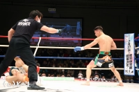 「振り返るまでもないというか…何が起きたか分からない感じで早く終わりました。あとで映像を見て、どんな試合だったか実感したいと思います。(対戦相手の印象は?)試合前はすごいスピードがあってアグレッシブに来るイメージだったんですけど、いざ対面したら、相手も試合が久しぶりというのもあって、あまり圧力を感じなくて、これならいけるなと思いました。(今後の目標は?)今日決まるチャンピオンとやる。それ以外にないです」