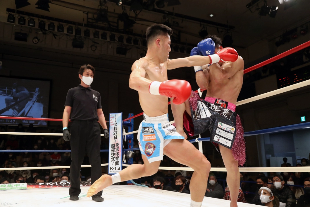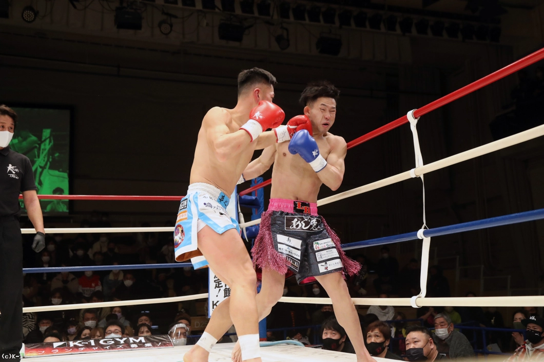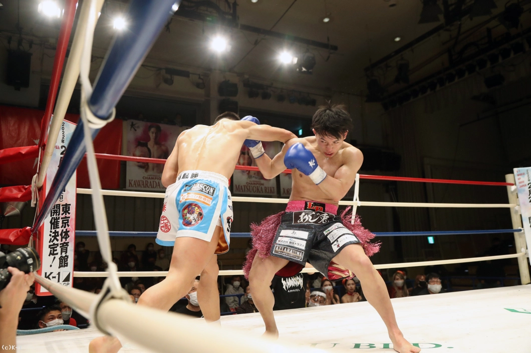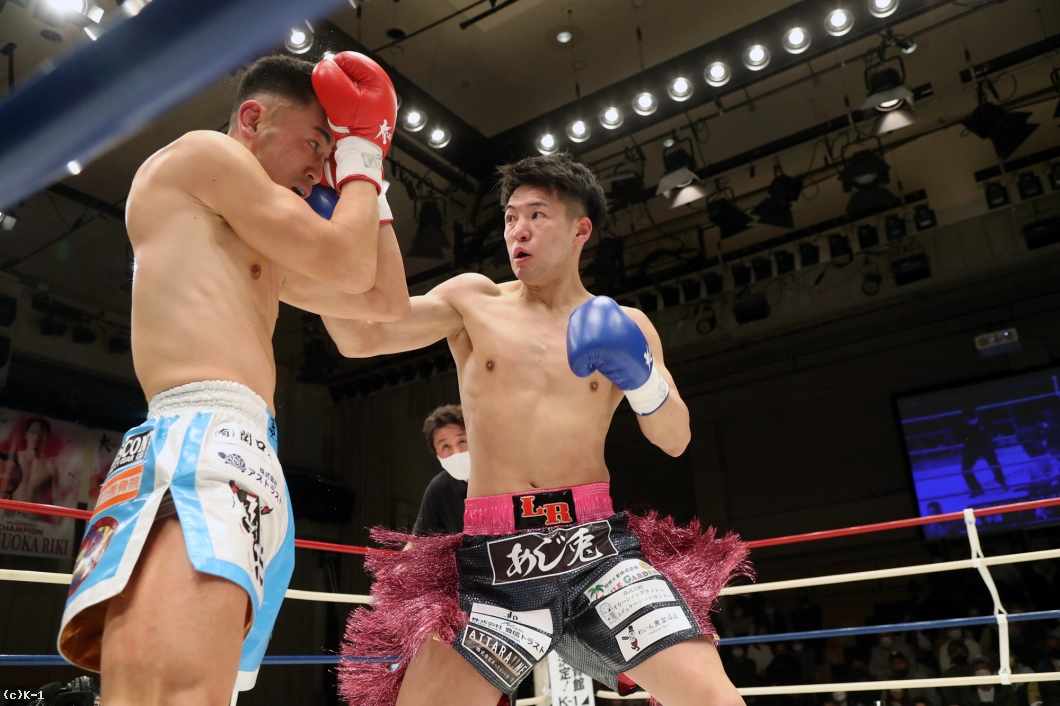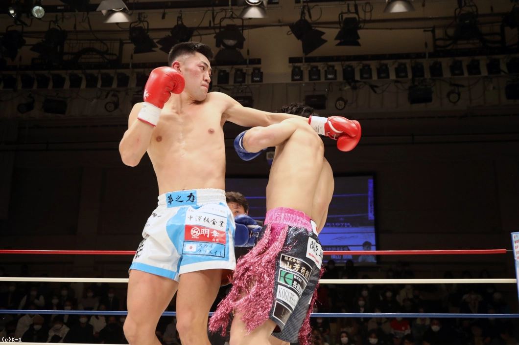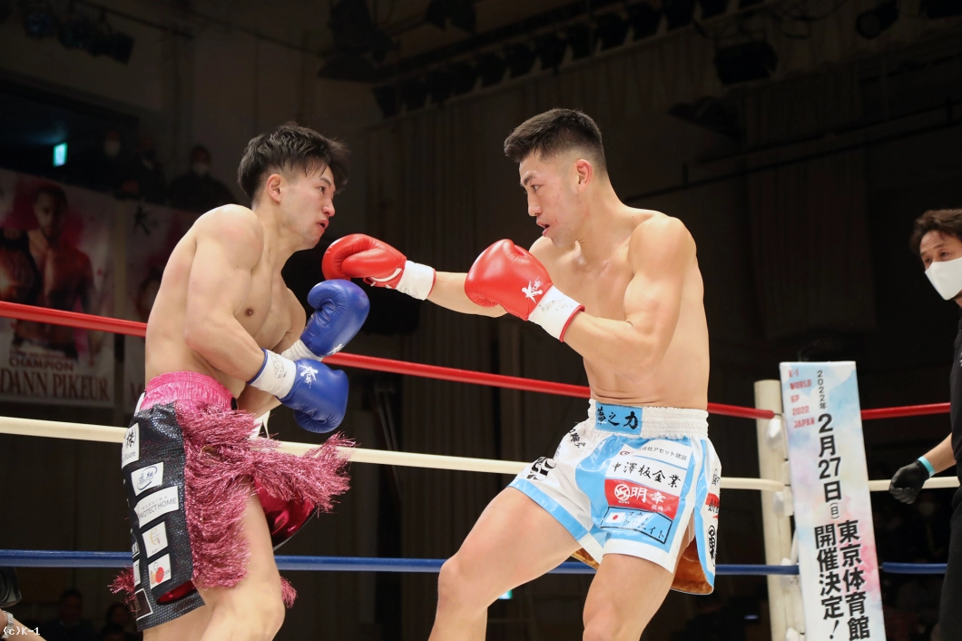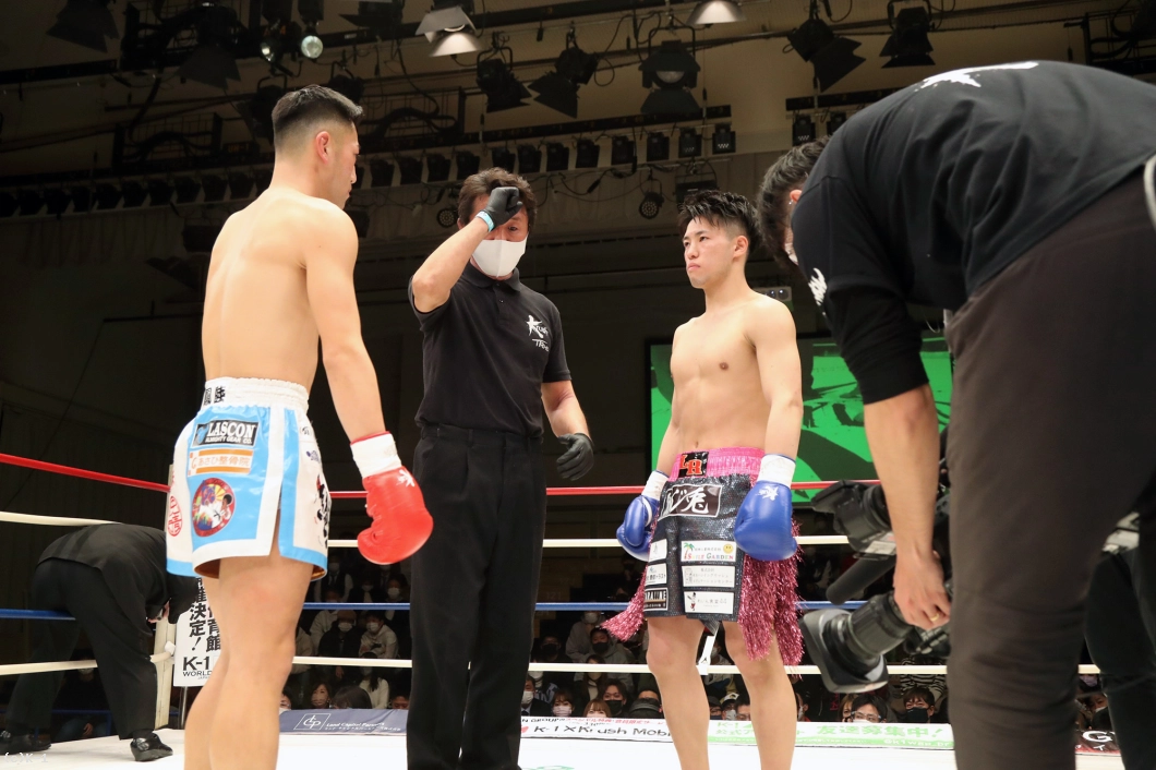 3R、サウスポーにもスイッチしていた中島だが、オーソドックスから左フックのカウンターを決めて横山からダウンを奪う。焦りの表情が見られる横山を中島は足払いで転倒させる。横山も連打で反撃するが、中島のガードを破れない。中島は横山の強打の嵐の中でも冷静さを失わず、ボディフック、右フックのカウンターを決めて試合を終える。判定は30-28、30-28、29-28の3-0で中島。新チャンピオンに輝いた。