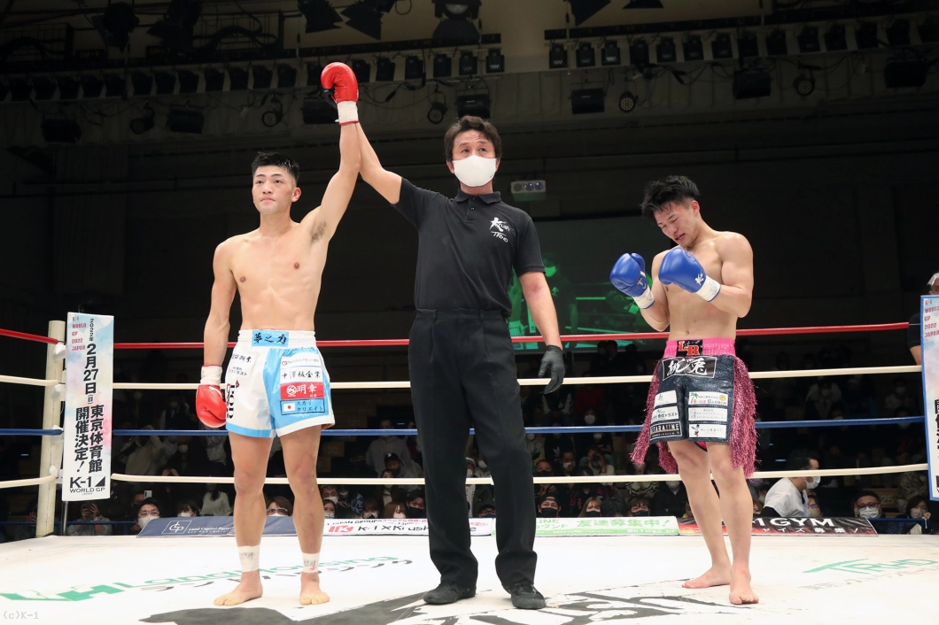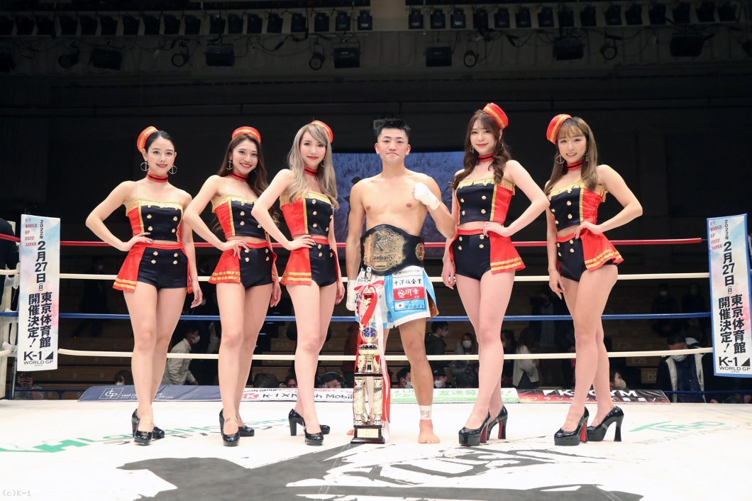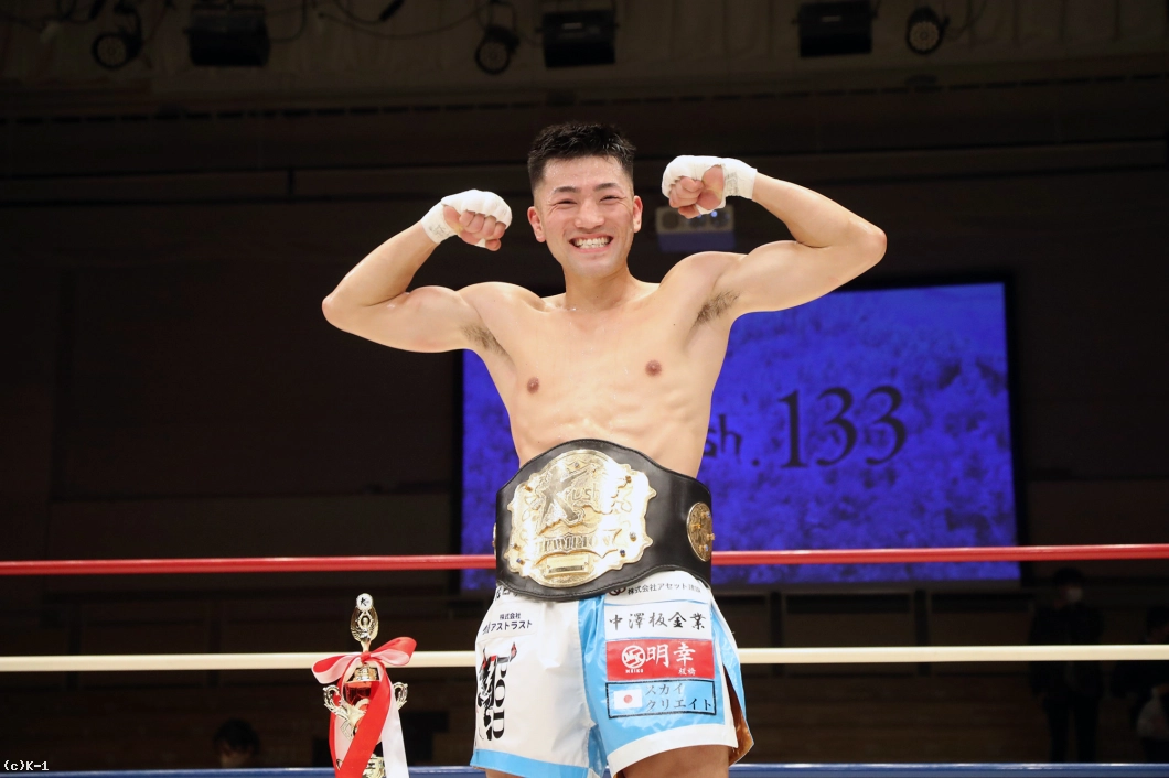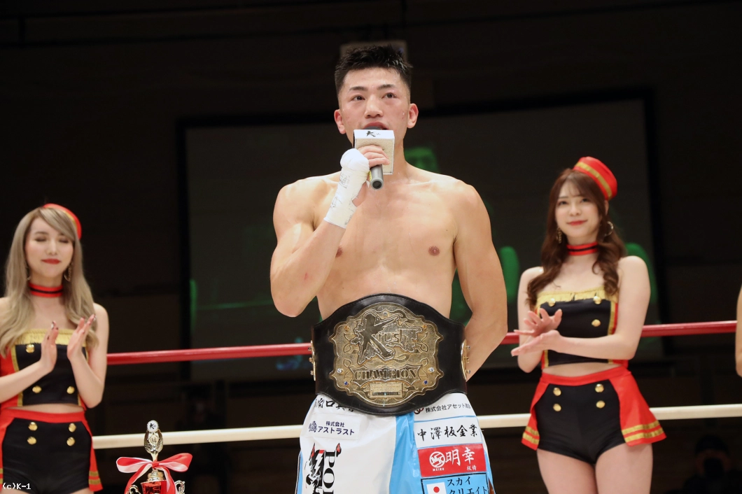 「このような時期ですが、応援に来てくださったみなさまありがとうございました。対戦してくれた友尊選手、横山選手、トーナメント全選手のみなさま、みなさまがいたから毎日練習をしっかり頑張ってこれたし、応援してくださるみなさまにしっかり勝手恩返しができればと思って頑張りました。空手を教えてくださった先生、キックボクシングを一から教えてくださった古川会長、ありがとうございます。2人の師匠がいなければ今の僕はいないと思っています。このベルトに恥のないようこれからも精進していきます。K-1のベルトが残っているので頑張っていきたいと思います」