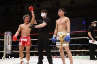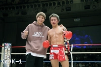 3Rも両者は打ち合いを展開。晃貴のパンチをブロックし、小倉はカーフキック(膝から下・ふくらはぎを蹴るローキック)をリターンする。だが晃貴も右ストレートを連続で当て小倉を下がらせる。小倉も左フックと右クロスを返すが、ブロックしながら体圧で押す晃貴がやや優勢か。両者頭を振って強振し、最後に晃貴が右ストレートを当てて試合を終える。判定は28-27、28-28、28-27の2-0で晃貴。復活勝利を収めた。