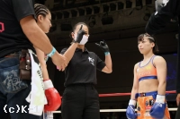 「すごい相手選手も強い気持ちだったので、乱暴な試合にはなってしまったんですけど、熱い試合ができたかなと思います。(対戦相手の印象は?)試合後に挨拶にいってきたんですけど、悔し涙を流していて。でも笑って応えてくれて良い選手だなと思いました。(Krushの印象は?)思っていた通りにレベルの高い選手も多くて面白い大会でした。(今後の目標は?)しっかり実力をつけて戦える選手に育つことと、6月のK-1女子大会に出て盛り上げていけたら良いなと思います」