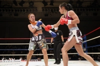 2R、MOEは左ミドル、前蹴りで森川をパンチの間合いに入らせず、ヒットを許さない。しかし進入を阻んでも森川は前進を止めず、右・左のフックでMOEを襲う。しかしMOEは距離をあけ、ジャブと蹴りを当てる。