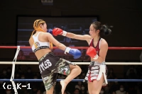 「久々の試合で、久々の勝ちでめっちゃうれしかったです。(対戦相手の印象は?)最後まで気が強くてずっと前に来て、むっちゃやりづらかったです。(今後の目標は?)今日みたいな試合内容じゃ6月のK-1女子大会にアピールできないと思うんですけど、6月までにしっかり仕上げるんで(K-1女子大会に)出れたらいいなと思います」