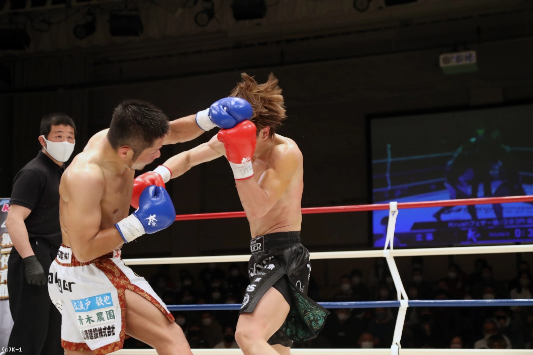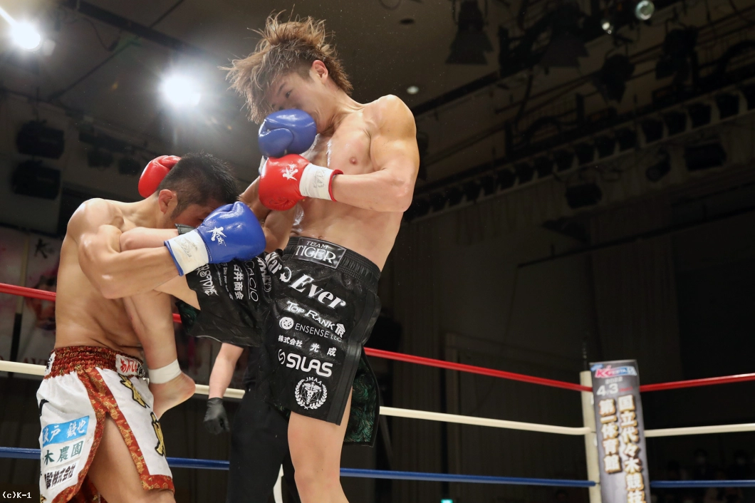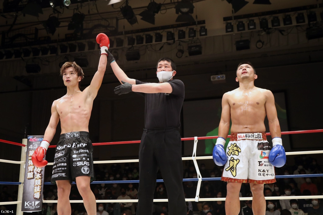 3R、詰めてくる秀樹に対し立基はボディへのヒザとボディブロー。秀樹は左ストレートと右フックを強振。立基はしかしガードを上げてこの強打をヒットさせず、ボディへのヒザ、右ストレートを当てる。判定は30-28、30-28、30-28の3-0で立基。秀樹の強打を封じ込んで勝利した。