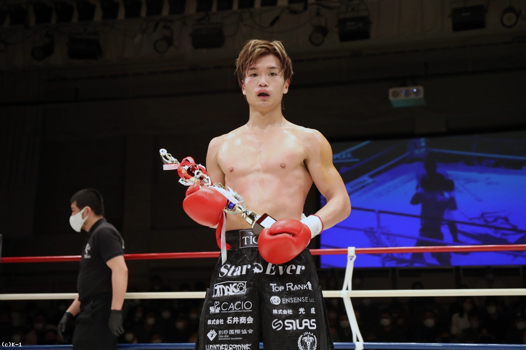 「今回は倒す意識があったんで、倒したかったんですけど…。完封も目標だったので完封できてよかったです。(対戦相手の目標は?)パンチは警戒していたので、実際にパンチを受けて『めっちゃパンチあるな』と思ったで倒しに行けなかったことは反省点です。ただ自分の方が格上だというのを分からせたかったので、そこはよかったです。(今後の目標は?)フェザー級の選手が増える中で自分という存在を知られてなかったと思うんですけど、そういうやつらを見返したくて練習してきました。これからフェザー級の面白い選手とどんどん当ててもらって、自分の方が強いってところを見せて最終的にはベルトを巻きます」
