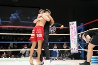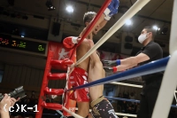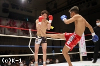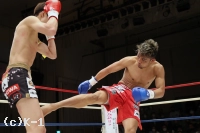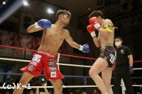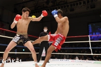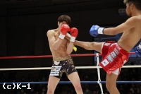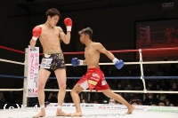 「(今の心境は?)うれしいんですけど、まだ信じられないです。本当にうれしいです。(試合展開を振り返って)効いたパンチは1つしかないです。多分2Rなんですけど、ジャブをもらって顎が変な感じになりました。(2度目の対戦だったが)こないだよりはやりやすかったです。今回、足を使わないって言ったじゃないですか? この相手に関してはこっち(足を使わない)の方がよかったと思います。(手応えのあった攻撃は?)ボディとローキックです。熱くなっちゃって大振りになりましたけど。ホントはもっと前に出たかったけどヒザ蹴りが怖くて出れなかったです。(ダウンを奪った左ハイキックは?)全く狙ってないです。でも左ハイは練習からずっとやってるんですよ。相手を押してハイキック。あれは練習で必ずやるんです。狙ってはないけど身体で覚えていたんで出ましたね。