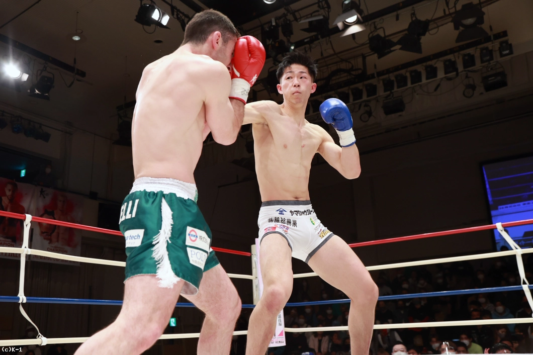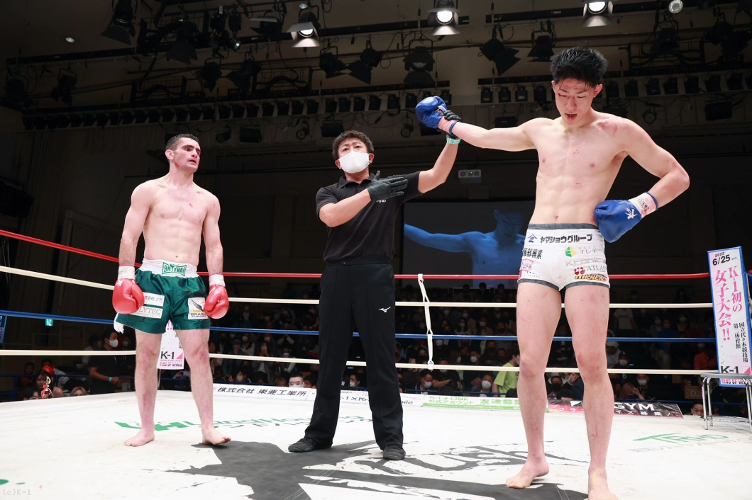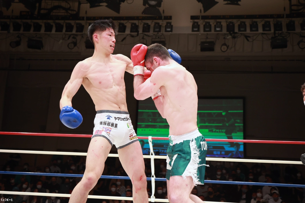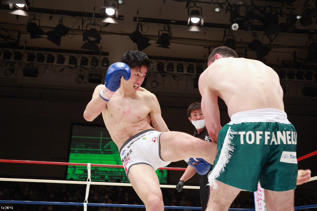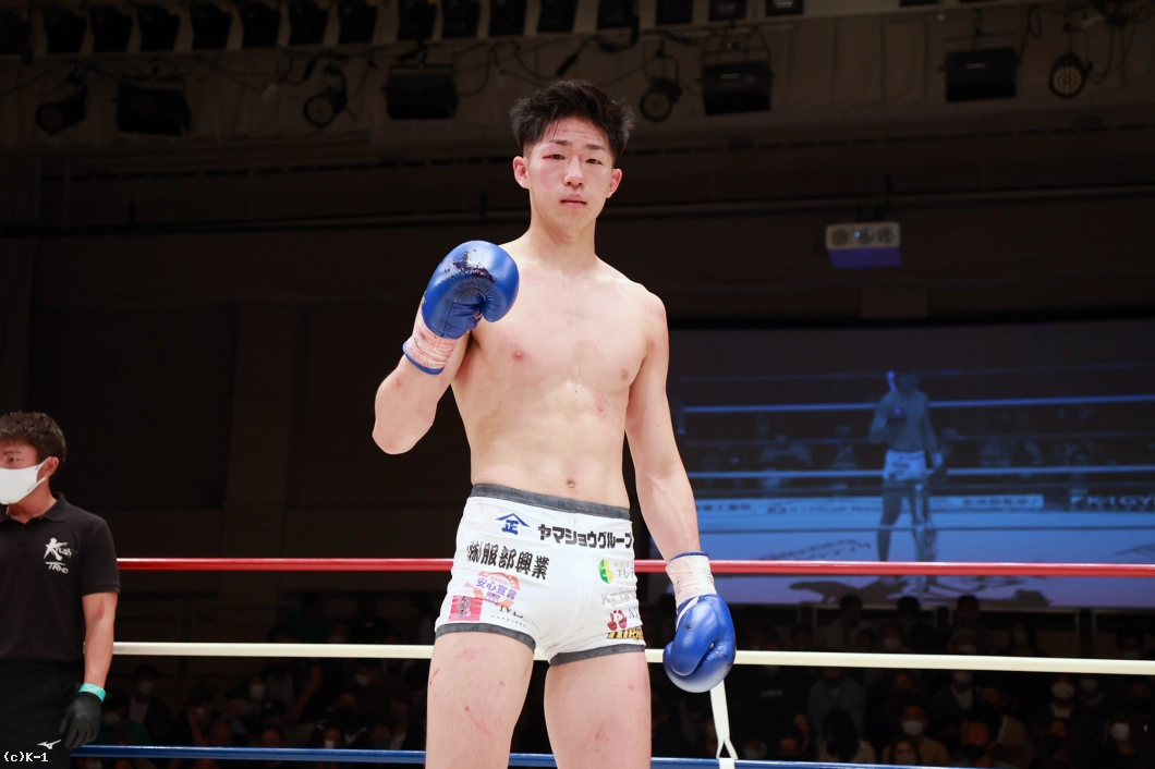 「トファネリ選手は思っていた通りタフで、厳しい試合だったんですけど、しっかり勝ちきれてよかってです。(対戦相手が直前で変更になって)相手の名前を聞いて兄と対策したのが勝ち切れた要因です。あとはもし延長になっても削り合って勝つ覚悟を持って戦ってことも要因だと思います。(今後の目標は?)Krush・K-1のベルトを目指しているので、今日の勝ちはいいアピールになったと思うので、これからも応援よろしくお願いします」