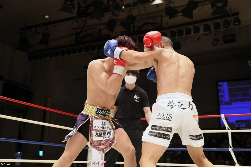 3Rも両者距離が詰まり過ぎてしまい、組む場面が見られる。ジャブからフックの峯、大村もアッパー・フックと振るうがどちらもクリーンヒットはない。峯がフック、大村が右ストレートを伸ばして終了となる。判定は30-29、30-30、30-30で峯に1票入るもドロー。延長戦に突入となる。