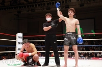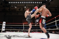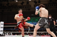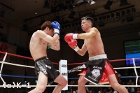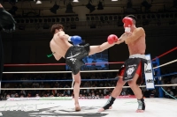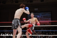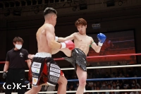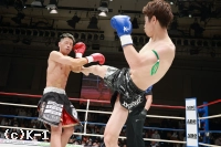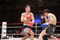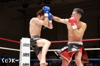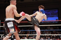 1R、サウスポーの大田は距離を取って立つ。佑典はそこへ思い切りよくアッパーを振るっていく。大田は右ロー、ボディストレート。佑典が迫らんとしても大田は蹴りの間合いを崩さず、ミドル、ハイと当てていく。2R、佑典が左ストレートを当てるが、大田も右ストレートを返して当てる。佑典は大田が作る間合いを飛び越え、左ストレートで襲う。だが、大田はクリーンヒットさせない。逆に右ミドルを佑典の左腕に当てていく。