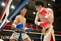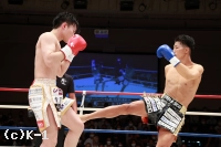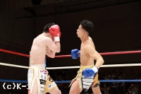 1R、前に出て圧力をかける小倉に対し、岩尾は距離を取ってジャブを突く。小倉は岩尾にコーナーを背負わせ、右ストレートでとらえてダウンを奪う。向かってくる小倉に岩尾はジャブからの左ボディを効かせ、左三日月蹴り・ミドルを連打で打ち込み、最後は左ボディををダメ押ししてダウンを奪取。小倉は立ち上がるも戦闘を再開できず、岩尾の逆転KOとなった。