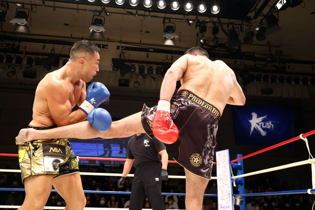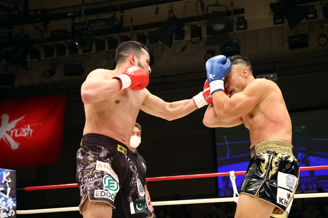 2R、ジュリオがストレート、アッパーと出ようとするが、ブハリはこれをガードした上でパンチ、ミドルと反撃する。ジュリオがパンチを振るってきても、ブハリはこれを見切って空を切らせ、ジャブ・ストレートと返す。