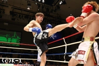 3R、麗斗は動きのスピードを上げ、ステップインしてのパンチで切り込む。だが長野は下がらず右ミドル、右ハイと返す。この右ミドルで麗斗の前進を食い止める長野。
