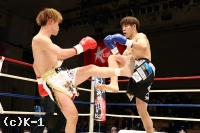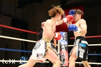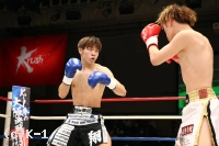 2R、にじり寄らんとする長野に麗斗はワンツー、ミドルと放ち遠ざけんとする。だが長野は下がらずプレッシャーを弱めない。再び右ストレートを伸ばす長野に麗斗も左フックを合わせる。