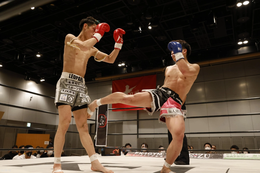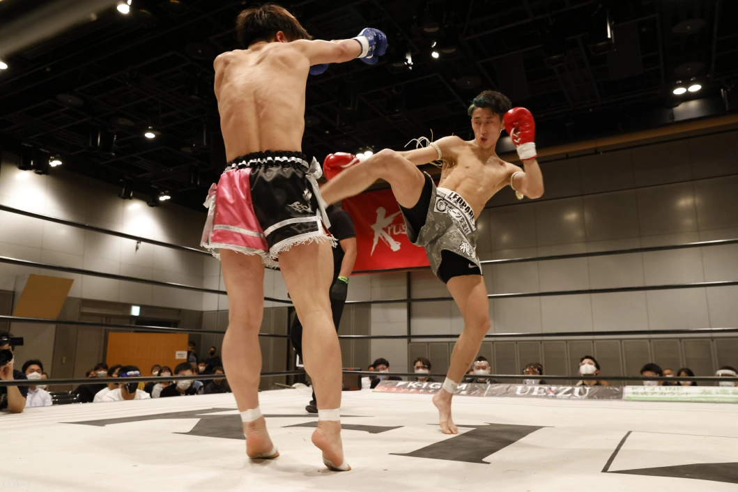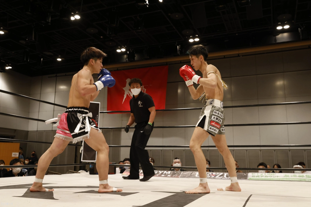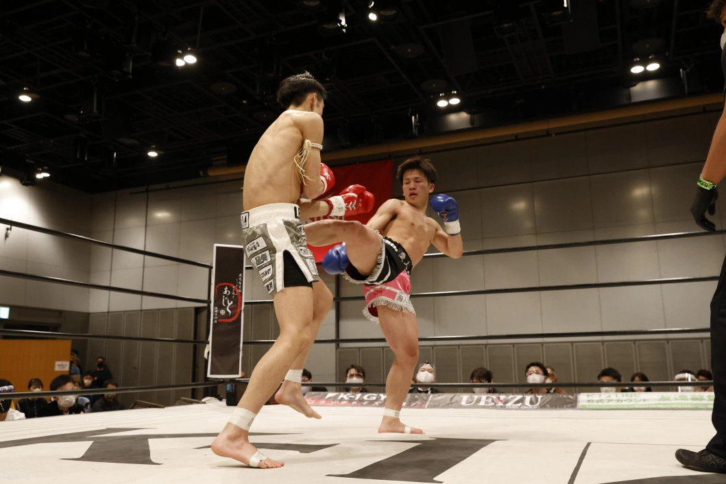 2R、石郷は前後にステップしてインローと奥足ロー。山脇はローを返して、右ストレートとヒザ蹴り。石郷は左ミドルを蹴り返し、距離が詰まると右フック。山脇も左フックを返す。石郷がパンチを見せて左ミドル、山脇は右ストレートで応戦する。