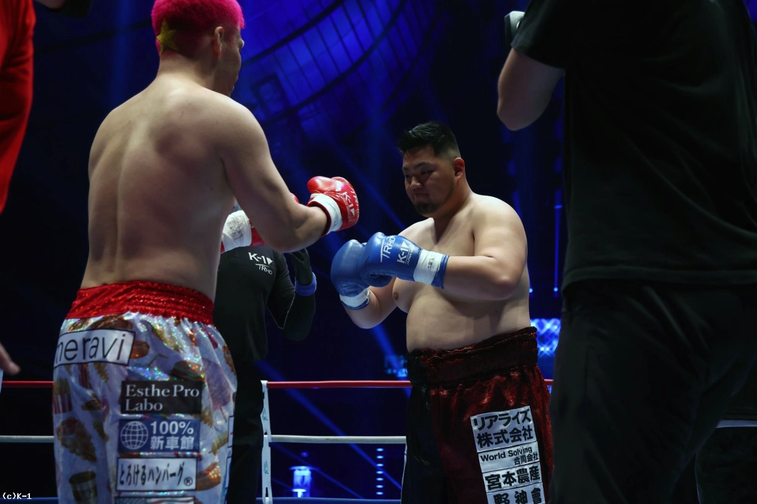 1R、坂本はジャブから左右ローを飛ばし距離を取る。カーフキックを放つ坂本だが、京太郎はそこに左右フックをまとめる。坂本の後ろ回し蹴りを、しかし京太郎は見切ってかわす。京太郎はガードの間から、あるいは坂本の打ち終わりに左フック、右ストレートを返していく。