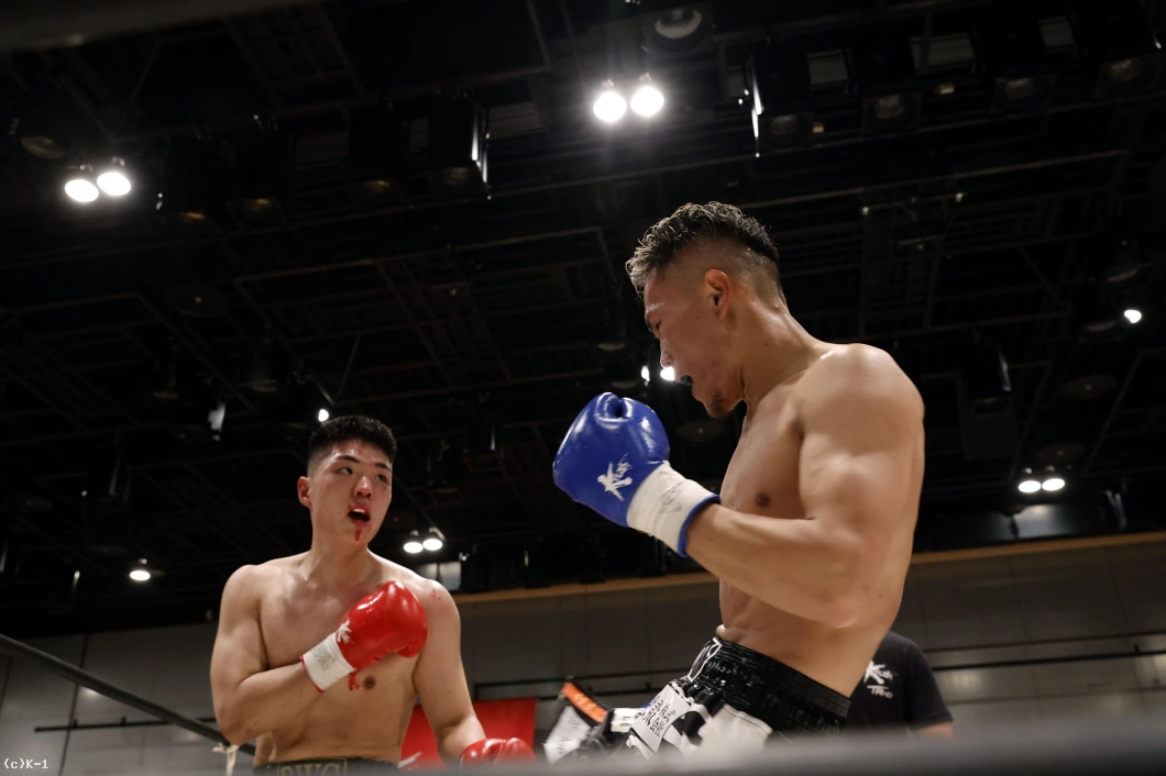 3R、前に出る龍が右ストレートを当て、パンチをまとめる。竜義もヒザ蹴りとローを返して、額をつけての打ち合いになると、激しく両者のパンチが交錯する。試合は龍が判定3-0が勝利し、プロ初白星を掴んだ。