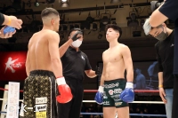2R、東本は稲垣がヒザを出そうとしたところに左フックでカウンターしてダウンを奪取。